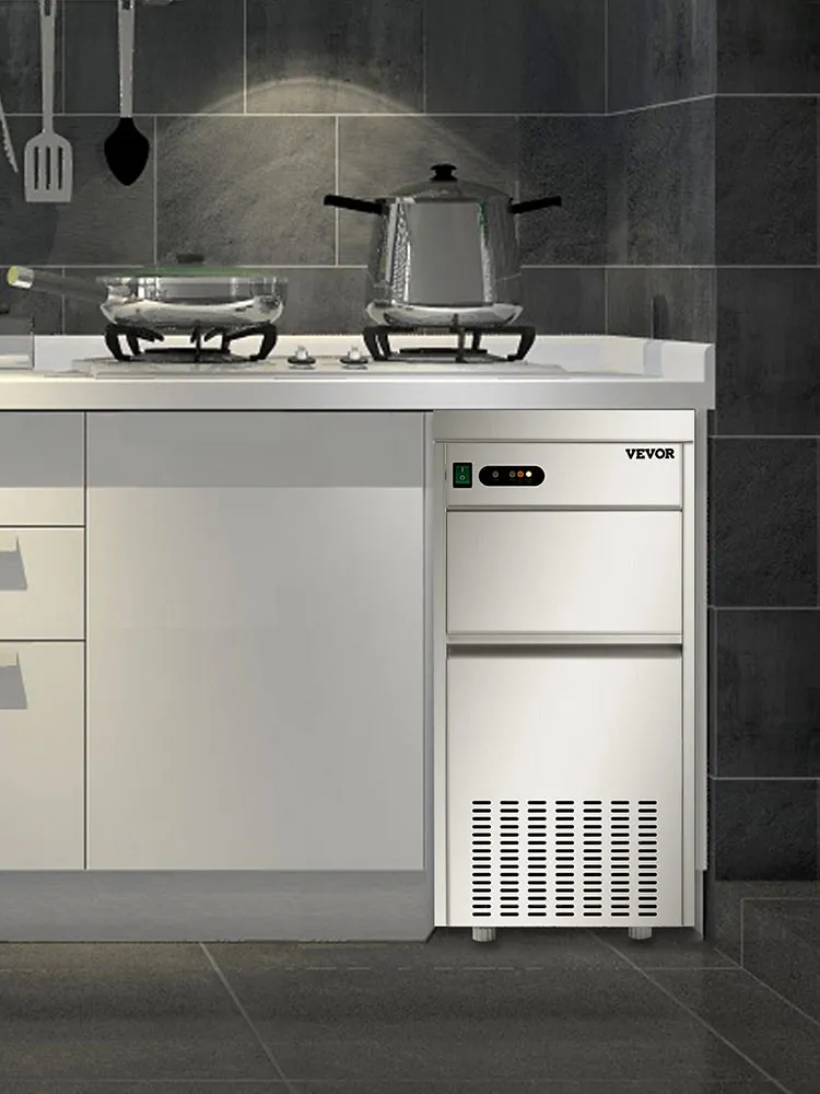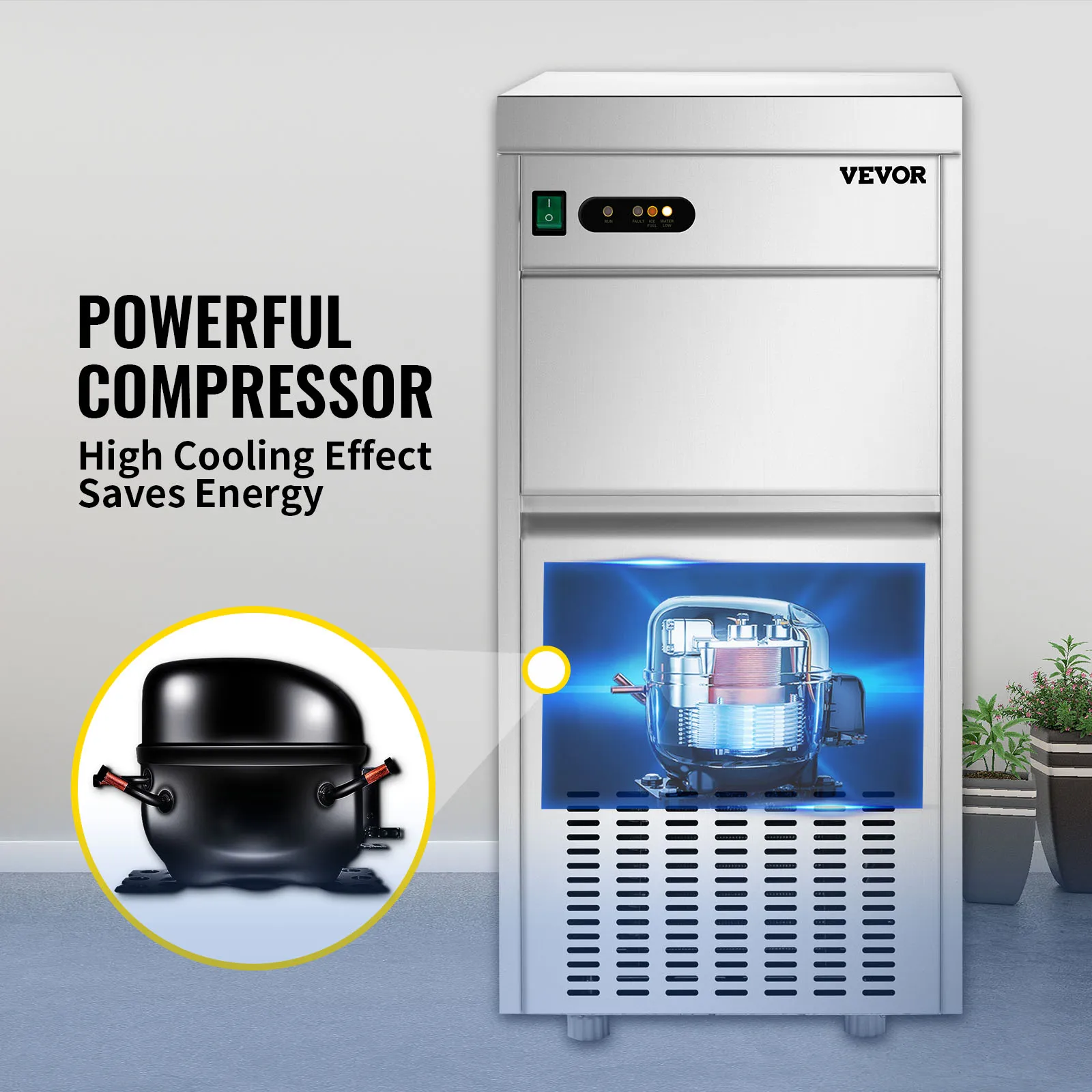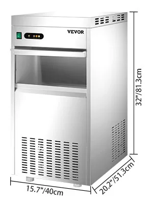 Questa macchina per la produzione di ghiaccio si fa 60 kg di ghiaccio ogni 24 ore. 15 kg di deposito di ghiaccio sufficiente.