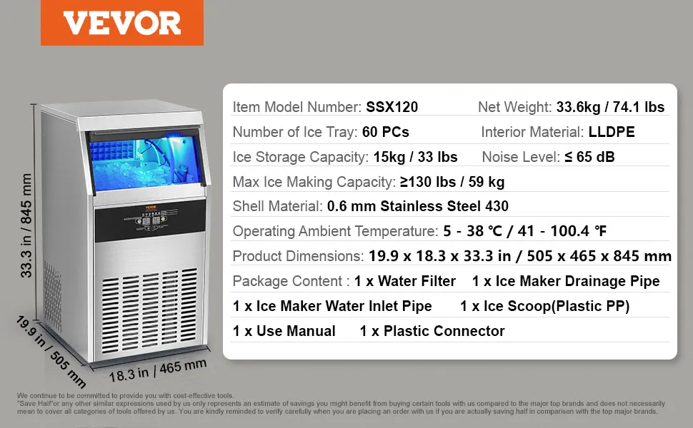 Macchina per il ghiaccio commerciale leggera: la nostra macchina per il ghiaccio commerciale è progettata con 60 vaschette per cubetti di ghiaccio e può produrre fino a 56 kg di ghiaccio al giorno a temperature comprese tra 5 e 38°C.