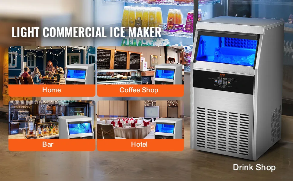 Il nostro produttore di ghiaccio funziona con un rumore minimo, garantendoti un ambiente confortevole. È adatto per l'uso domestico, piccoli ristoranti, bar, caffetterie e negozi di bevande, rendendo ogni sorso e momento più piacevole.