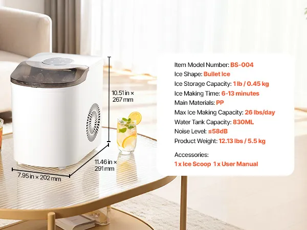 Produzione di ghiaccio ultraveloce: questa macchina per il ghiaccio da tavolo produce 7 cubetti di ghiaccio sferici in soli 6 minuti. Con il suo serbatoio d'acqua da 830 ml, può produrre fino a 12 kg di ghiaccio al giorno