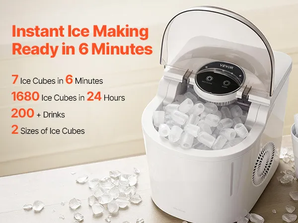 Disponibili due dimensioni di cubetti di ghiaccio: la nostra macchina per il ghiaccio da tavolo offre due dimensioni di cubetti di ghiaccio. I cubetti di ghiaccio piccoli sono ideali per mantenere freschi i frutti di mare e raffreddare la birra