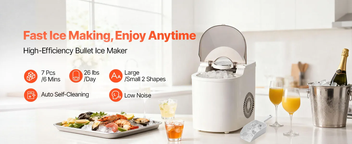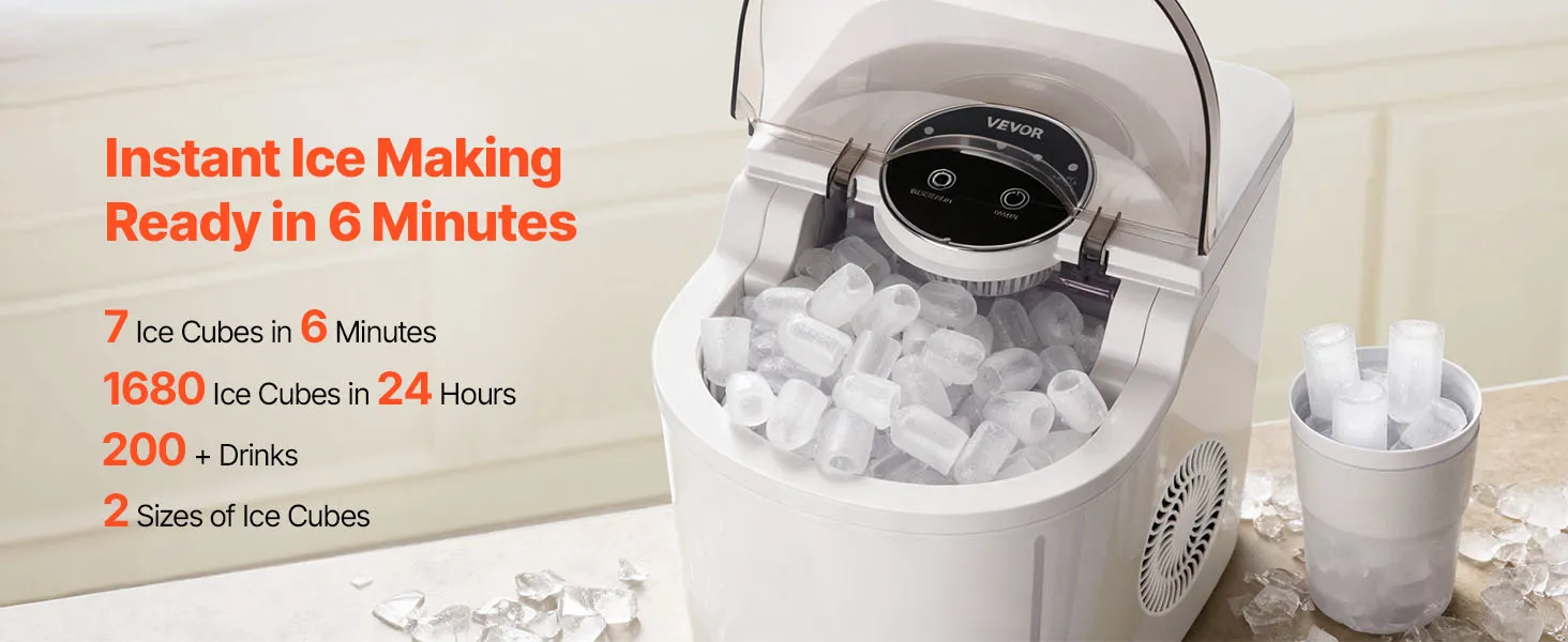 VEVOR Macchina per il Ghiaccio da Tavolo, 7 Cubetti di Ghiaccio in 6 Minuti, 11,8 kg al Giorno, Macchina Autopulente con Paletta, con 2 Dimensioni Raccolto per Casa, Cucina, Ufficio, Bar, Feste