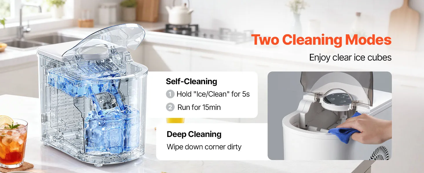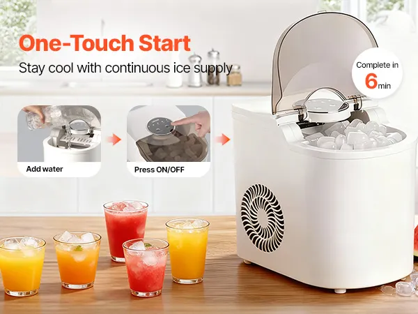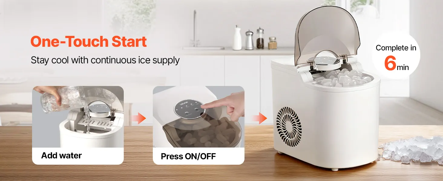 Funzionamento semplice e intuitivo: questa macchina per il ghiaccio autopulente è comoda. Il pannello di controllo è facile da usare: basta riempire d'acqua, premere l'interruttore on/off e selezionare la dimensione del ghiaccio desiderata