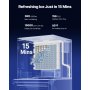 • Produzione di ghiaccio: La macchina per il ghiaccio è dotata di vaschette per 156 cubetti e consente di regolare lo spessore del ghiaccio modificando il tempo di produzione. Il potente compressore produce cubetti di ghiaccio in 12-15 minuti