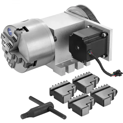 VEVOR Asse Rotativo di Rotazione CNC, 65 MM Altezza 115 mm Mandrino a 4 Griffe e 4 Contropunta Asse di Rotazione CNC 4° Asse, è Utilizzata nel Rotolo, nello Stigma, nel Bambù, in Forma Cilindrica, Curva