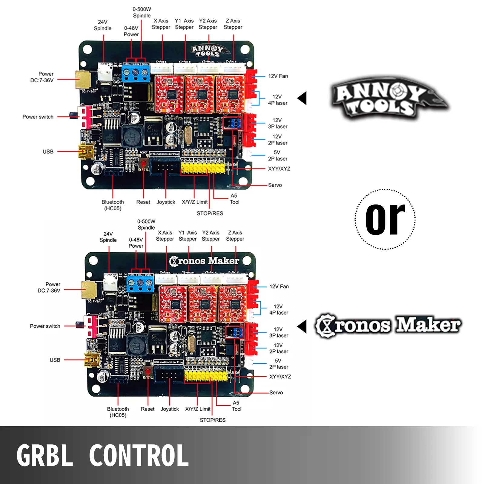 La scheda di controllo GRBL può essere collegata a un computer tramite un'interfaccia USB, con doppio asse Y, azionamento a quattro assi e piena funzionalità. Laser è in grado di emettere 2P / 3P e supportare funzioni PWM, TTL, che possono raggiungere una maggiore praticità. Questi due tipi di pannelli di controllo vengono forniti a caso, ma non influiscono sulle prestazioni.