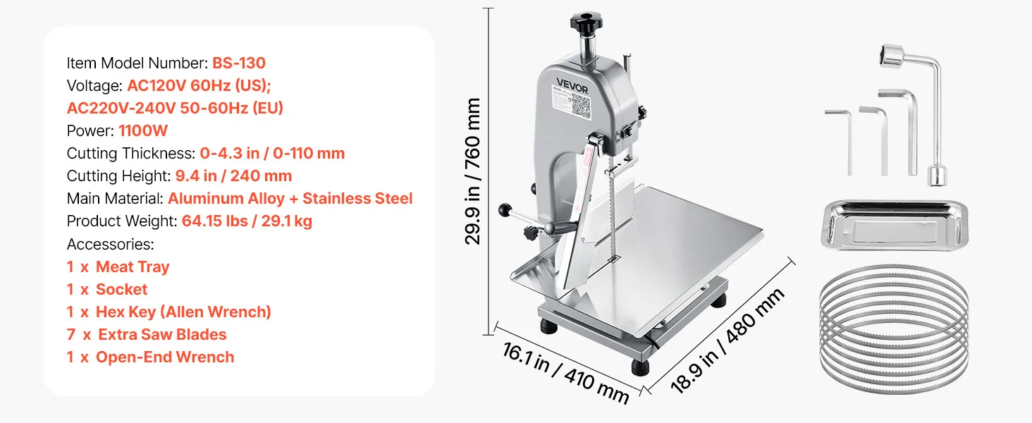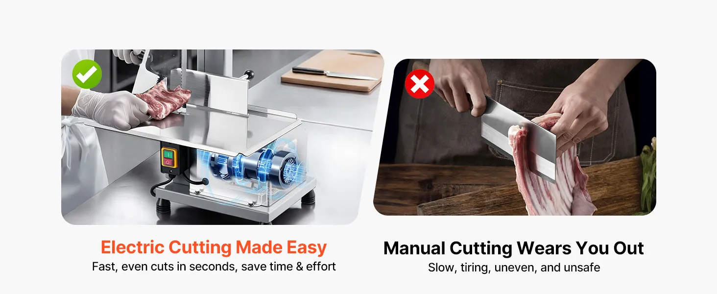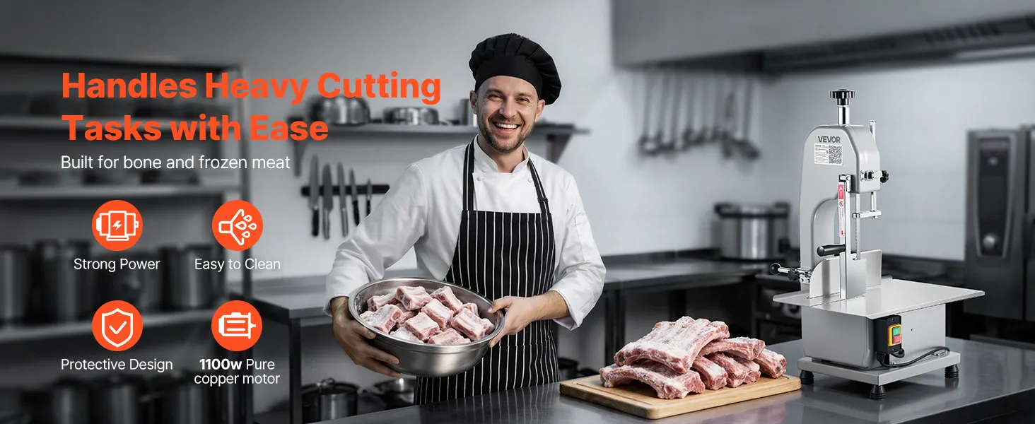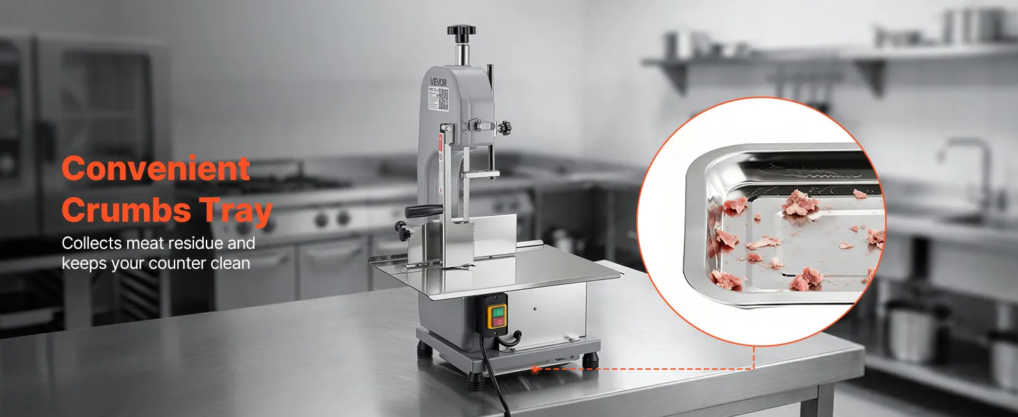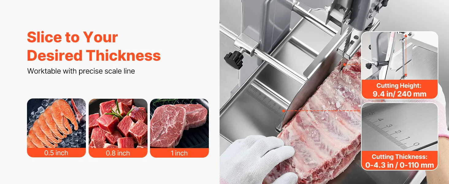 VEVOR Troncatrice Elettrica a Nastro per Carne Ossa 1100 W, Taglierina per Ossa di Maiale Area di Lavoro 315 x 460 mm Spessore di Taglio 0-110 mm Lame di Ricambio, Troncatrice per Carne Congelata