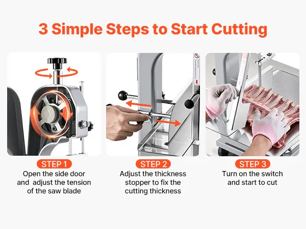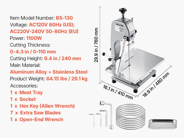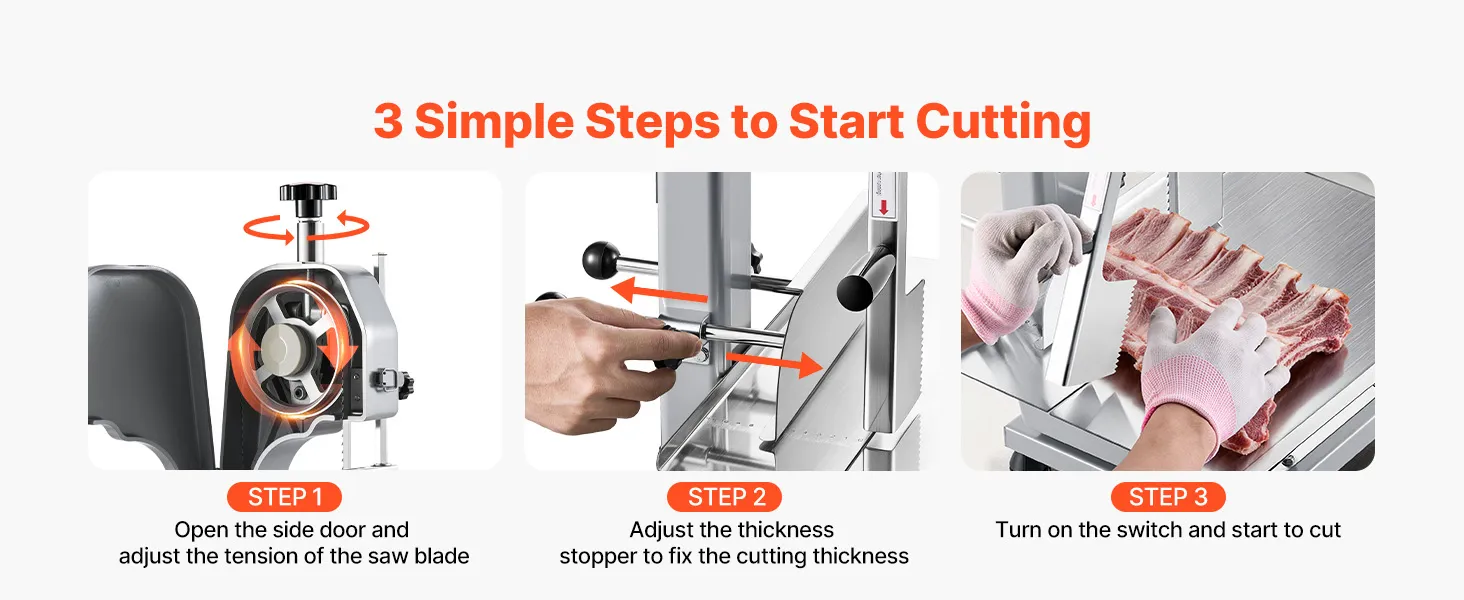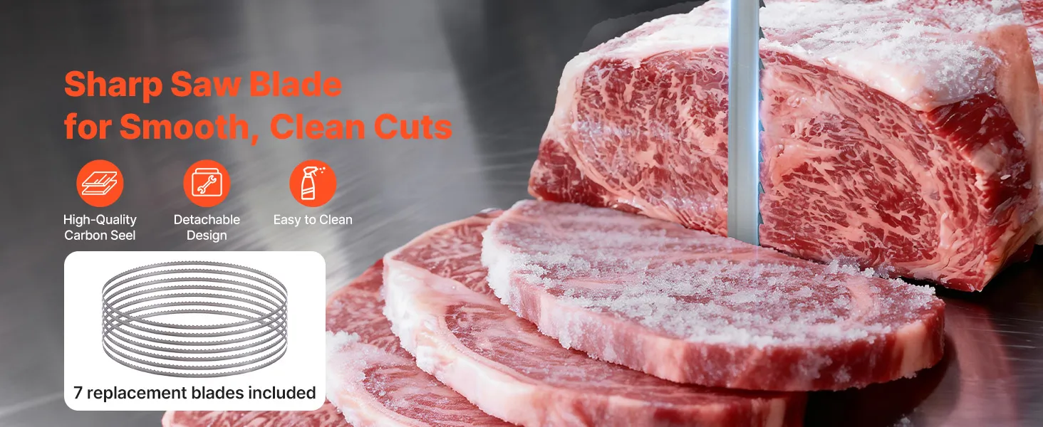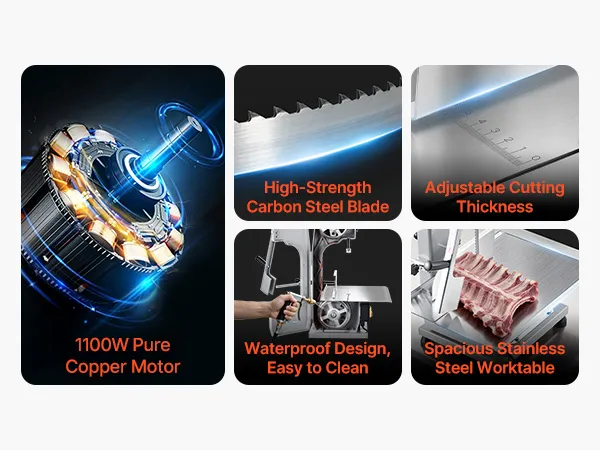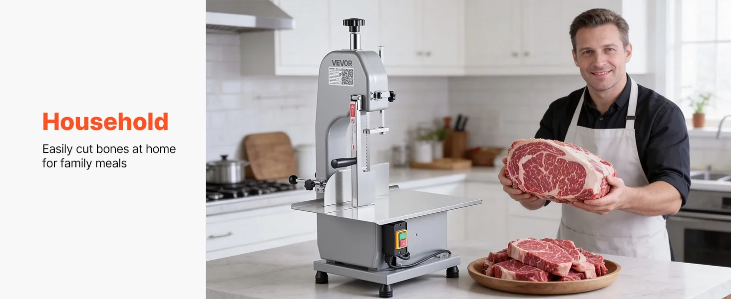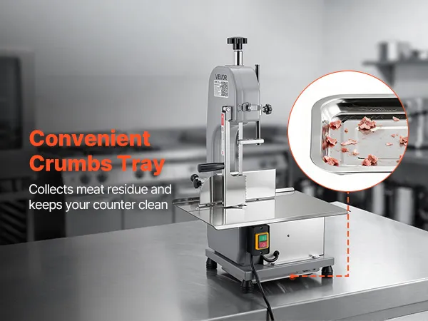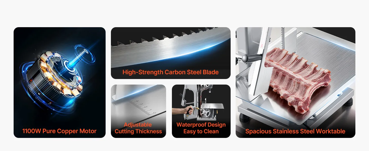 VEVOR Troncatrice Elettrica a Nastro per Carne Ossa 1100 W, Taglierina per Ossa di Maiale Area di Lavoro 315 x 460 mm Spessore di Taglio 0-110 mm Lame di Ricambio, Troncatrice per Carne Congelata