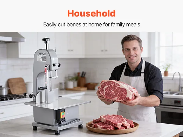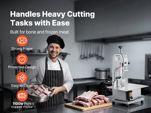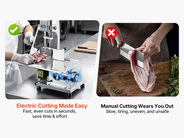 Taglio rapido ed efficiente: Questo tagliaossa elettrico consente tagli uniformi e continui in breve tempo con una pressione minima. Alimentato da un motore in rame puro da 1100 W e da una lama affilata, la macchina lavora facilmente ossa dure e carne congelata. La carne fresca e disossata non è adatta alla lavorazione