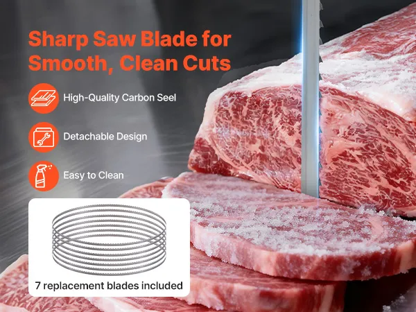 Struttura robusta: La macchina è realizzata con componenti in alluminio pressofuso e acciaio inossidabile ed è progettata per un utilizzo prolungato. Sono incluse sette lame di ricambio aggiuntive, che garantiscono che il tagliaossa rimanga affilato e pronto all'uso anche durante il funzionamento continuo