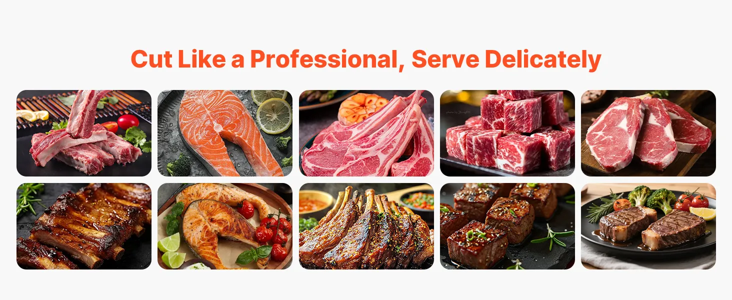 Una soluzione di taglio ad alte prestazioni per la lavorazione professionale di carne con osso e congelata. Garantisce un funzionamento fluido, risultati precisi e un utilizzo duraturo e affidabile per una preparazione quotidiana efficiente.