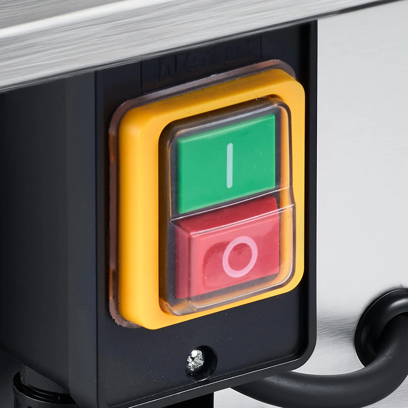 Funzionamento rassicurante: La troncatrice a nastro per carne è progettata per una manipolazione sicura ed è dotata di un interruttore di alimentazione impermeabile e di componenti scorrevoli in acciaio inossidabile