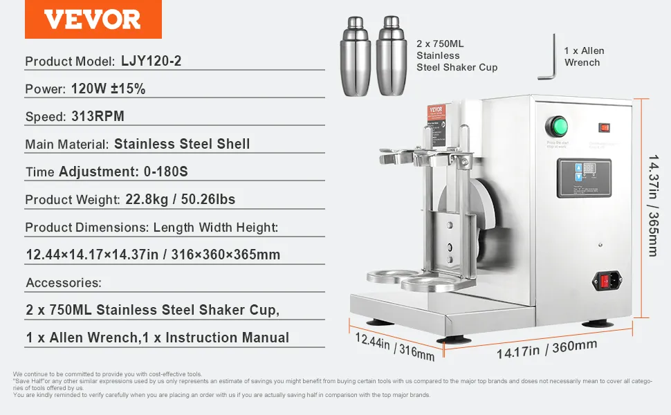 VEVOR Shaker per tè al latte, ideale per i negozi di tè al latte