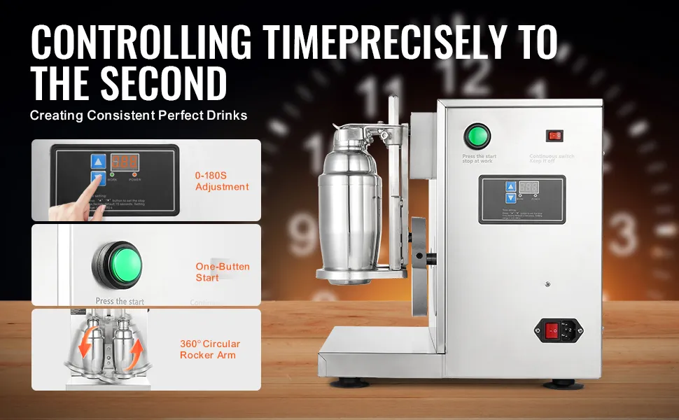 Controllo preciso della temporizzazione: con regolazioni precise della temporizzazione da 0 a 180 secondi, puoi impostare il tempo di agitazione secondo necessità per ottenere la miscela ideale per ogni bevanda. Il design di avvio con un solo pulsante rende il funzionamento semplice e intuitivo.