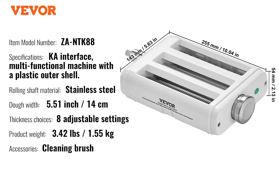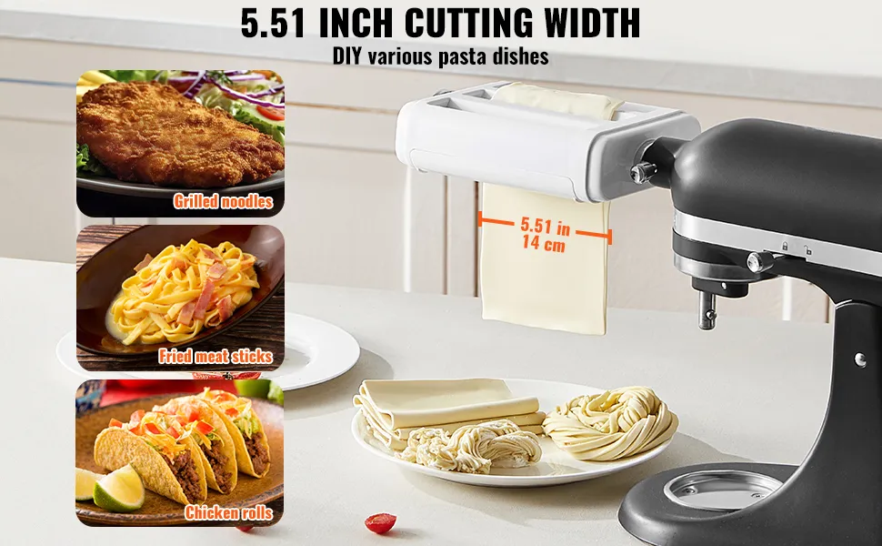 Questo accessorio per pasta VEVOR per KitchenAid offre due larghezze di pasta: 0,06 pollici di spessore e 0,24 pollici di larghezza. Scegli la larghezza più adatta al tuo piatto, che tu preferisca spaghetti o fettuccine. Diverse larghezze di pasta aggiungono varietà ai tuoi pasti, migliorando sia la presentazione che l'esperienza culinaria. Questa flessibilità è perfetta per creare diversi piatti di pasta per cene di famiglia, feste o occasioni speciali. Con la facilità di cambiare larghezza di pasta, puoi aggiungere varietà e versatilità alla tua cucina con questo accessorio.