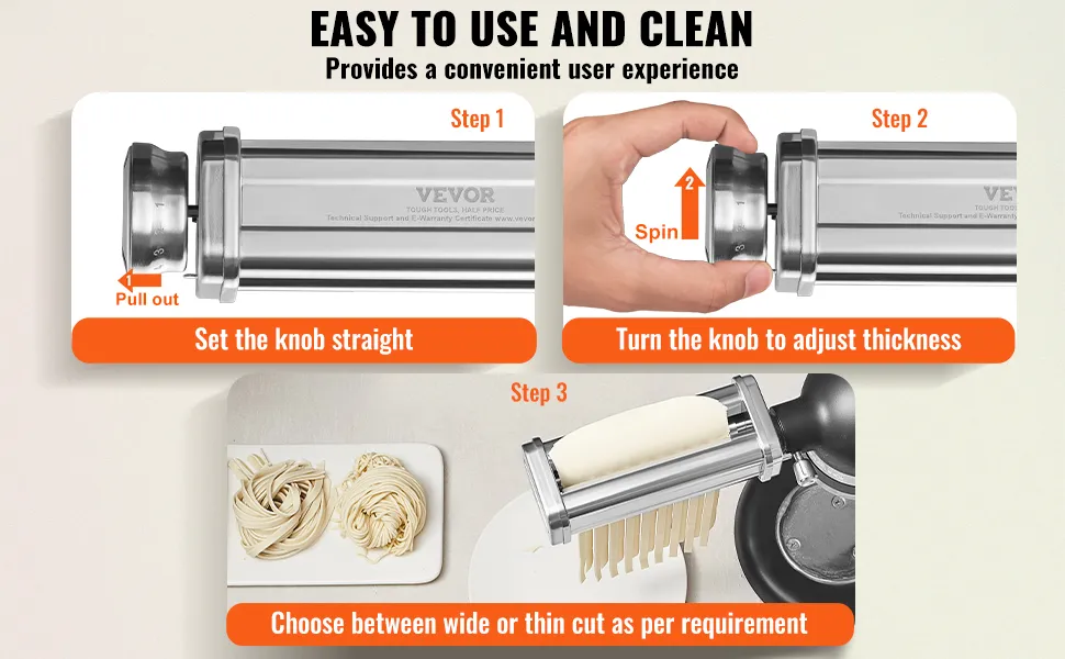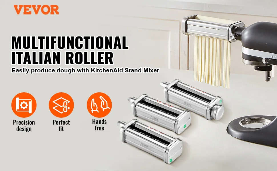 Questo accessorio per pasta VEVOR per la planetaria KitchenAid rende la preparazione della pasta più facile che mai. Si collega perfettamente a tutte le planetarie KitchenAid, trasformando il tuo elettrodomestico in una potente macchina per la pasta. Con questo accessorio, creare pasta fresca fatta in casa è facile e veloce, dandoti risultati costanti e di qualità professionale ogni volta. Che tu stia preparando spaghetti, fettuccine o ravioli, questo strumento gestisce tutto, offrendo una preparazione della pasta senza sforzo per cuochi casalinghi e amanti della pasta.