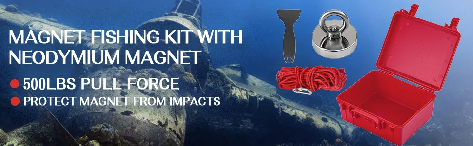 【ACCESSORI COMPLETI】 - Tutto il necessario per iniziare a pescare con il magnete in un unico kit! Un magnete a forza di trazione da 500 libbre, una corda con nucleo solido intrecciato da 65 piedi, custodia antiurto / impermeabile con pala in plastica.