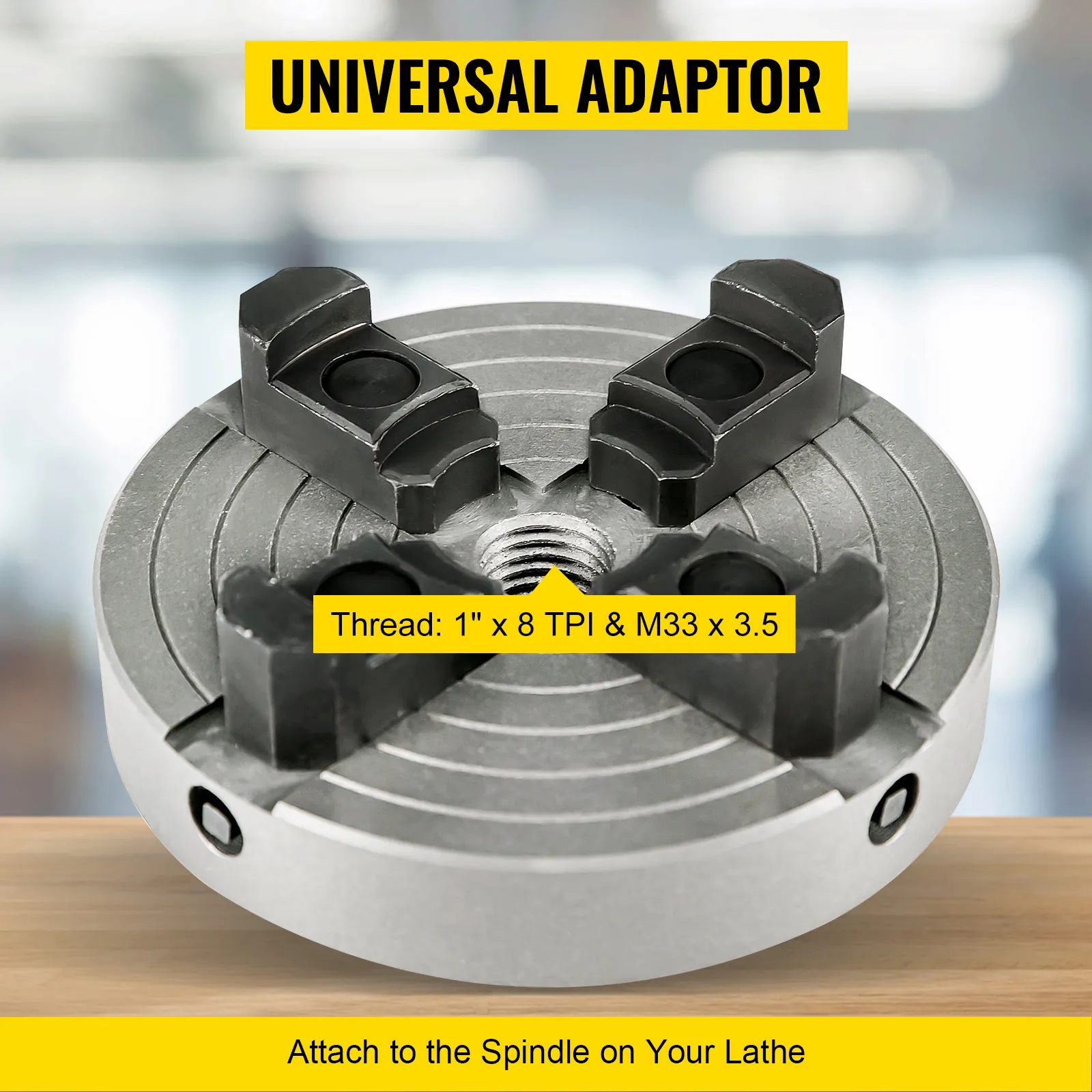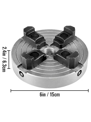 Il mandrino autocentrante per tornio pesante manterrà il tuo lavoro stretto e sicuro su torni midi e per legno di dimensioni standard. Contiene mandrini e semilavorati dall'interno o dall'esterno. Chuck è pre-filettato a 1 "x 8tpi. Include un adattatore universale. Include anche una chiave a brugola e una serie di leve di serraggio. Pesa 5,4 kg (5,4 kg). Con diametro di 150 mm (6").