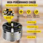 Questo versatile mandrino per tornitura del legno è realizzato in acciaio temprato di alta qualità, resistenza alla compressione e ha una lunga durata. Questo mandrino per ingranaggi conici ha una funzione di autocentraggio che elimina la necessità di ripetute calibrazioni durante l'installazione. Il mandrino a 4 griffe ha un'ampia gamma di serraggio e può contenere parti industriali con dimensioni comprese tra 45 mm - 98 mm. Le due viti interne ed esterne fissano saldamente il mandrino al tornio per la lavorazione del legno per garantire il funzionamento sicuro ed efficiente del mandrino.