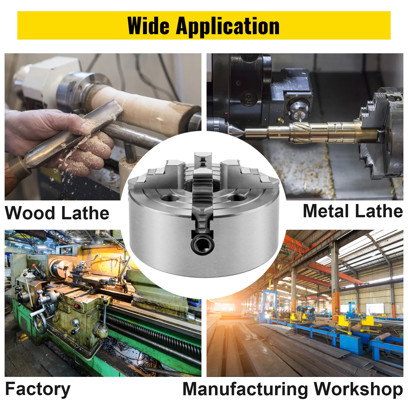 Il mandrino a quattro griffe è adatto per vari torni per impieghi generali, torni CNC economici, rettificatrici, fresatrici, trapani e accessori per macchine utensili.