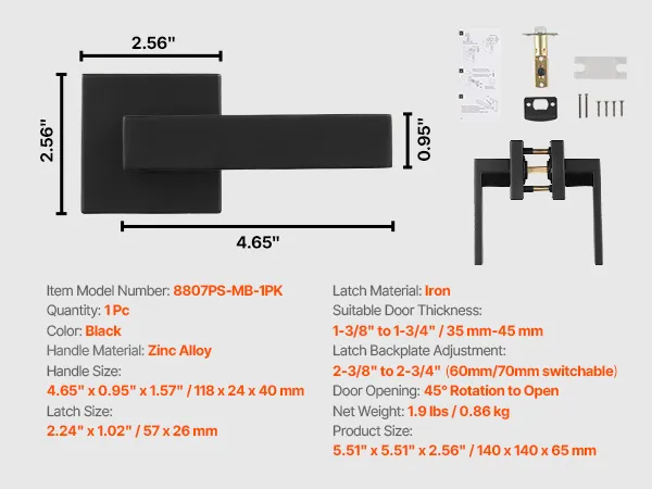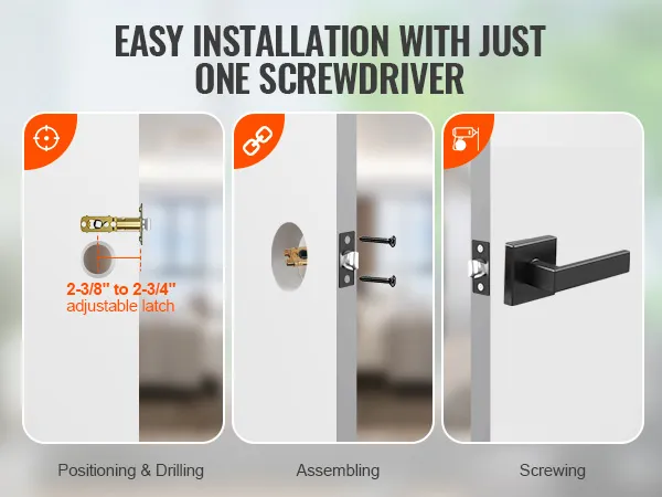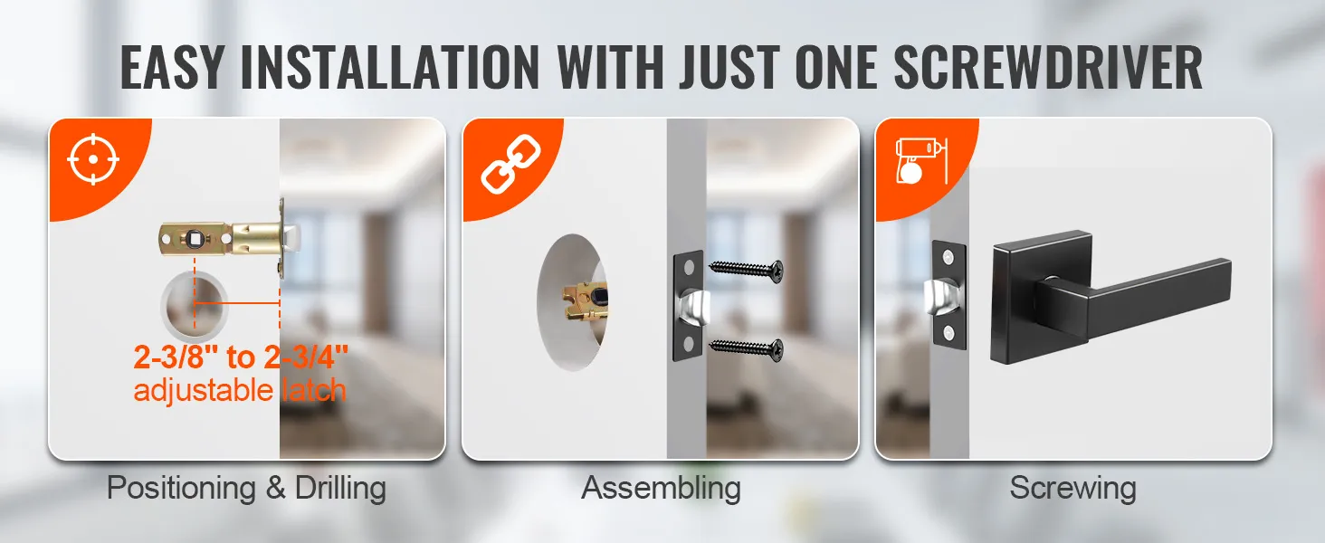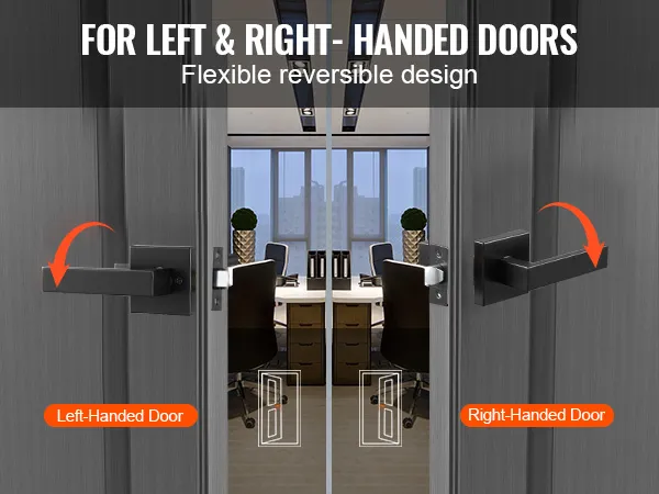 Design universale e reversibile: la nostra leva per porta nera è dotata di un fermo regolabile da 2-3/8 pollici (60 mm) o 2-3/4 pollici (70 mm), adatta per porte con spessore compreso tra 1-3/8 pollici (35 mm) e 1-3/4 pollici (45 mm). Il design reversibile consente l'installazione su porte sia sinistre che destre, rendendolo adatto a oltre il 95% delle porte interne