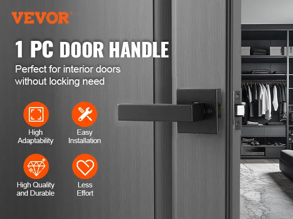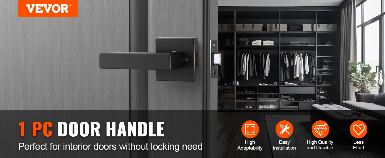 VEVOR Maniglia per Porta di Passaggio, 1 Pezzo, Leva per Porta Nera Opaca Reversibile Destra Sinistra con Serratura Senza Chiave, Rotazione di 45° per l'Apertura, Interno Quadrato Universale
