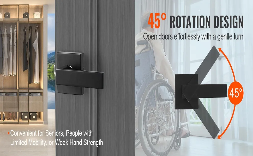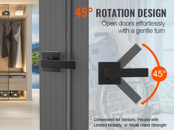 Rotazione a 45° per un'apertura senza sforzo: l'accesso rapido alla porta con una semplice rotazione di 45° richiede meno sforzo rispetto alle maniglie convenzionali a 90°. Questa maniglia interna per porta è perfetta per spazi ristretti ed è particolarmente comoda per chi ha mobilità limitata