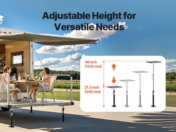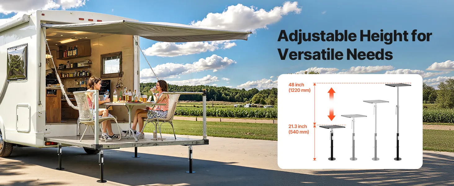 Altezza regolabile: questa gamba di supporto estensibile per camper è regolabile da 541,02 mm (21,3 pollici) a 1219,2 mm (48 pollici) e ruota fluidamente senza inceppamenti, consentendo una facile regolazione dell'altezza
