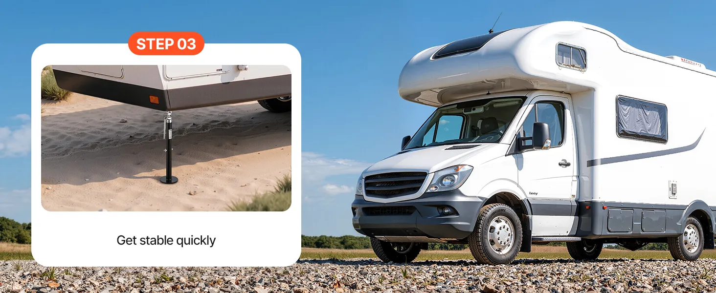 Stabilità migliorata: ciascuno dei nostri supporti estraibili per camper può sostenere fino a 453,59 kg (1000 libbre), offrendo al vostro camper un supporto sicuro e stabile. Riduce al minimo i movimenti causati da estrazioni