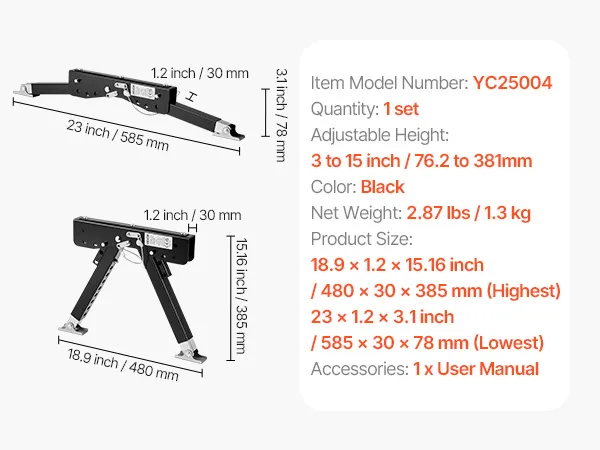 VEVOR Stabilizzatore per Gradini RV Set di Supporto per Gradini Regolabile in Altezza, per Scale in Acciaio Verniciato a Polvere per Roulotte, Rimorchi e Camper, Regolabile da 76,2 a 381 mm
