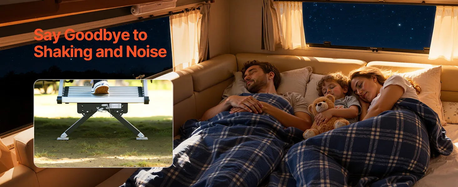 Il nostro stabilizzatore per gradini per camper è dotato di cuscinetti sigillati e di un rivestimento resistente alla corrosione, che garantisce un funzionamento fluido e costante. È progettato per un'affidabilità a lungo termine e non richiede manutenzione regolare.