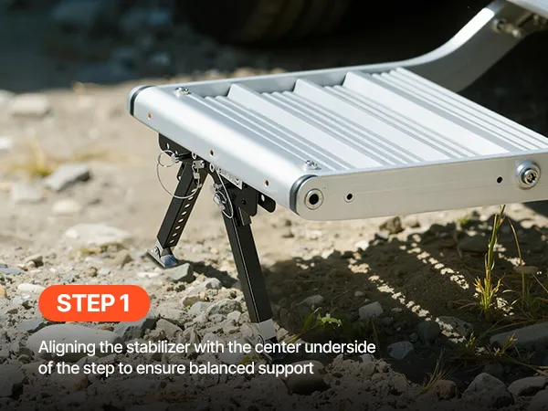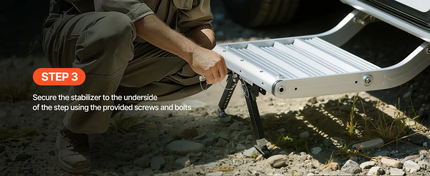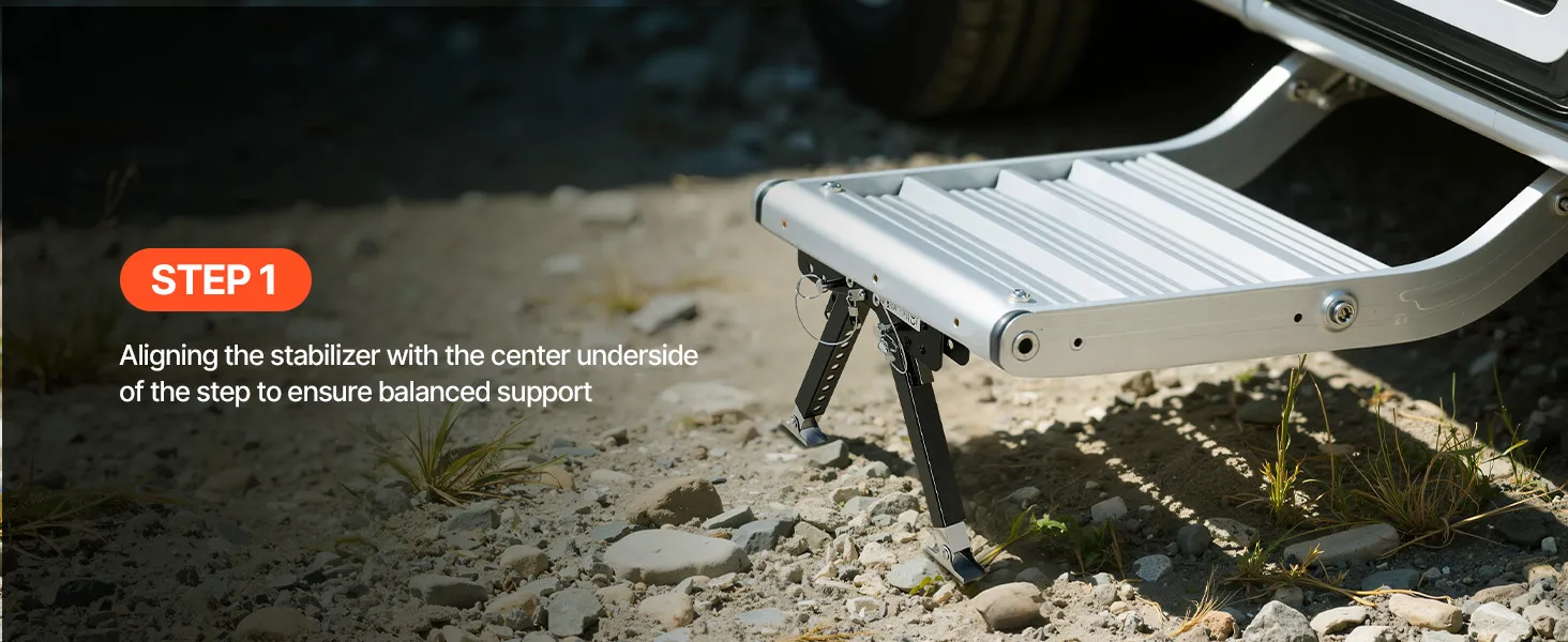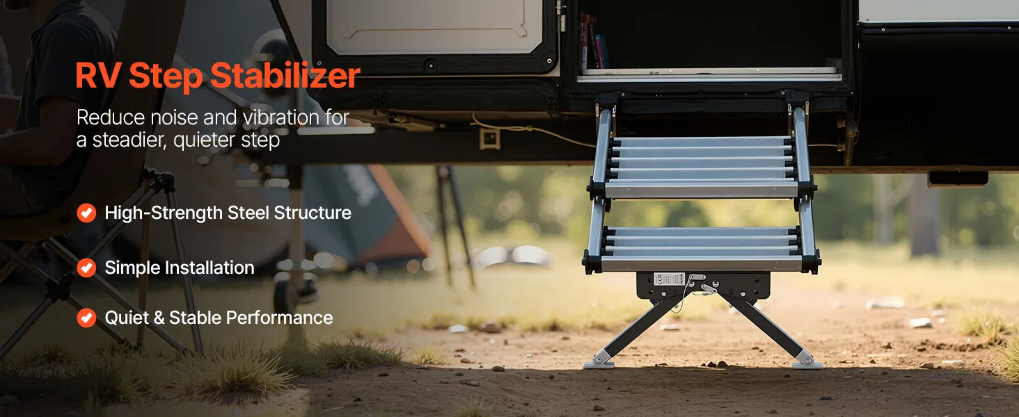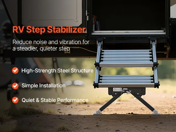 Design robusto: questo stabilizzatore per gradini per camper è realizzato in acciaio di alta qualità con un rivestimento antiruggine avanzato, che lo rende resistente ai graffi e all'usura all'aperto. Che si tratti di sole, vento o pioggia