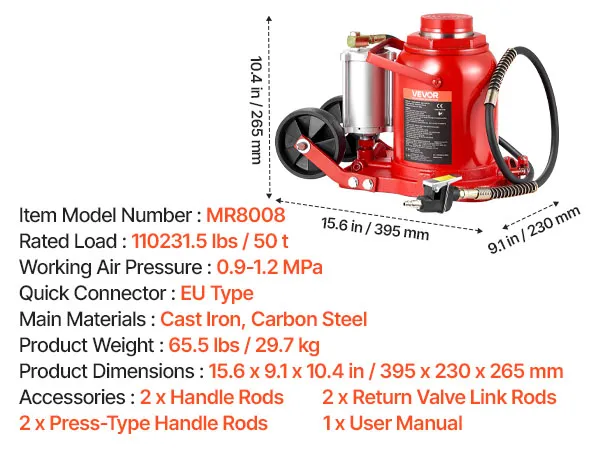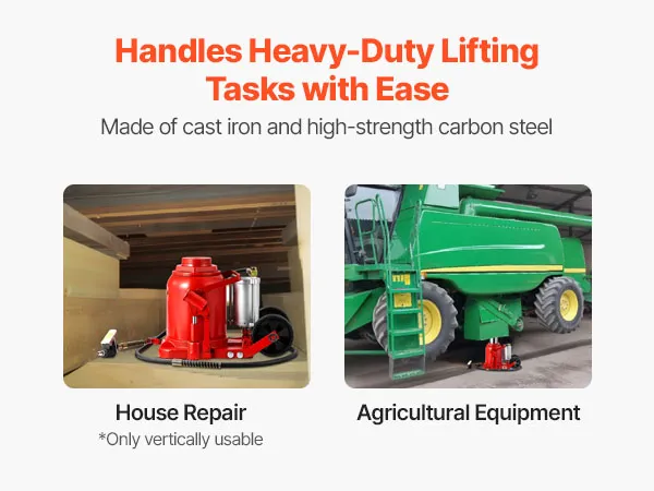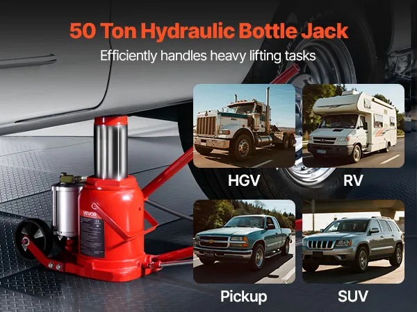 Sollevamento pesante: con una capacità di sollevamento fino a 50 tonnellate (110.231,5 libbre), questo cric idraulico a bottiglia gestisce camion con cassone, camper e SUV con facilità, ideale per cambi pneumatici e ispezioni rapide