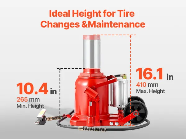 Ampia gamma di sollevamento: questo piccolo cric a bottiglia ha un'ampia gamma di sollevamento, dal basso all'alto. Solleva da 265 mm (10,4 pollici) fino a 410 mm (16,1 pollici)