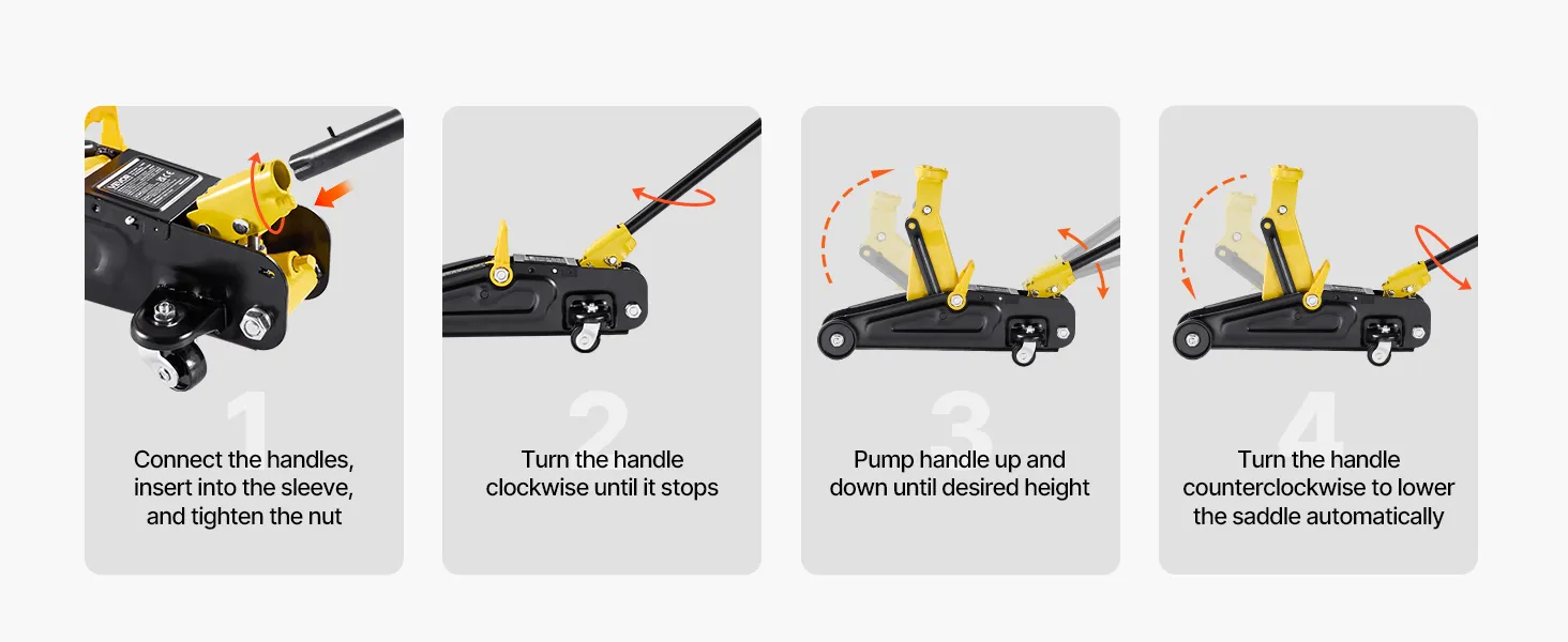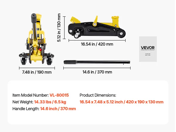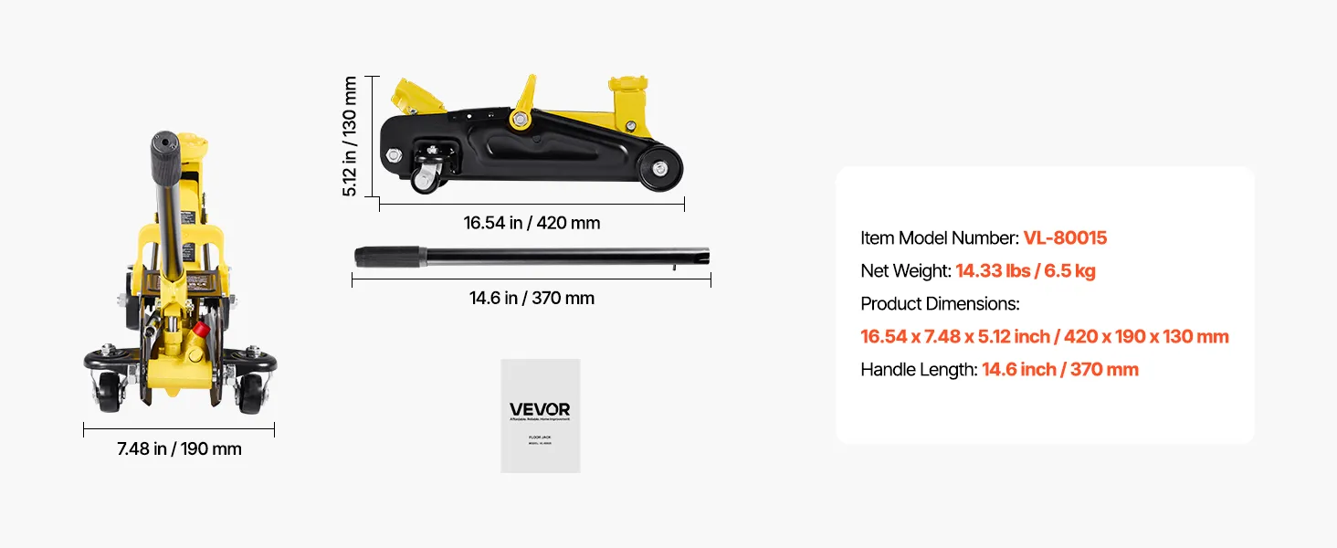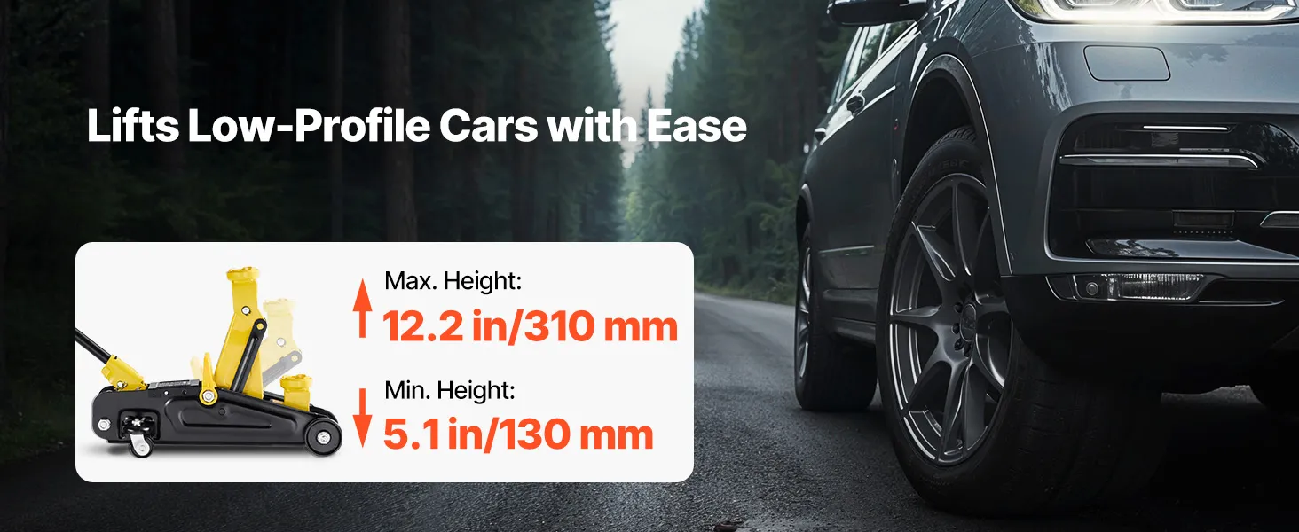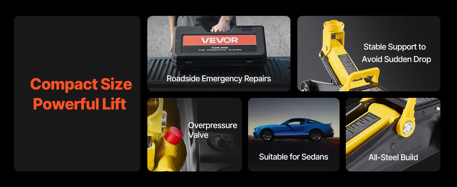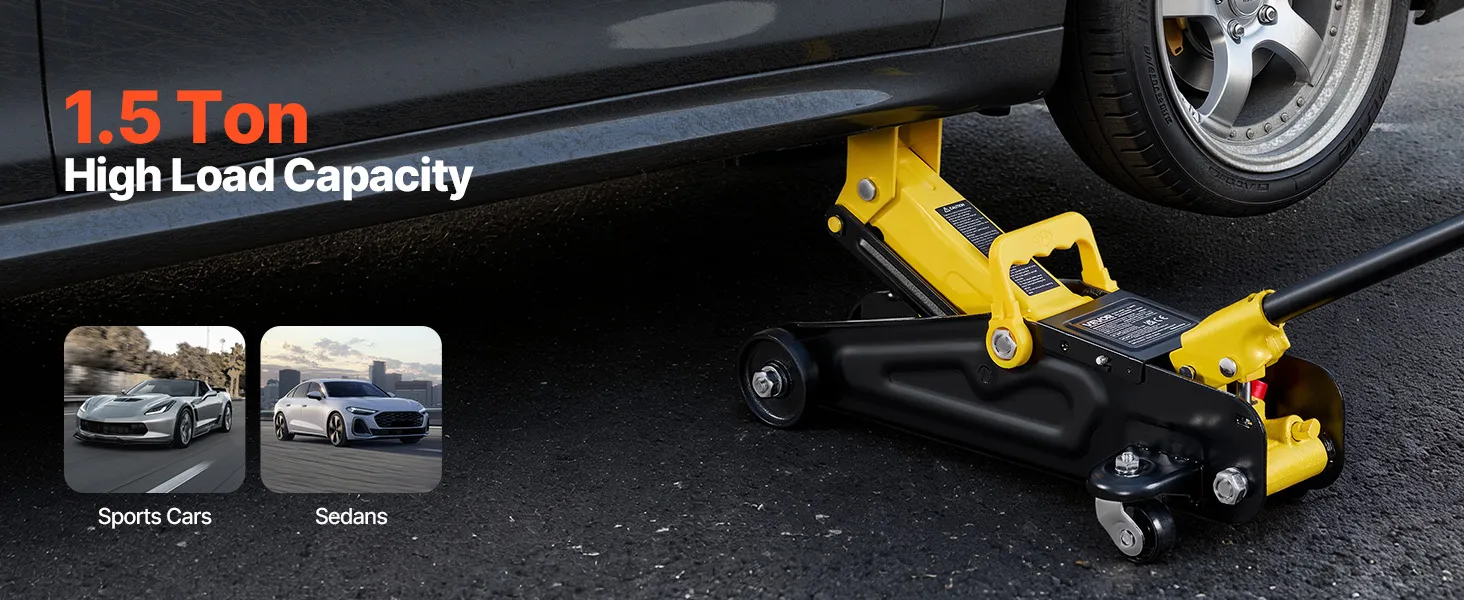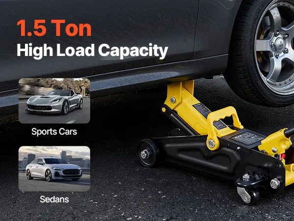 Carico massimo di 1,5 tonnellate: il nostro cric da pavimento supporta fino a 1,5 tonnellate (3300 libbre), ideale per sollevare auto sportive e berline. È affidabile per la manutenzione domestica, il cambio gomme, il controllo dei freni