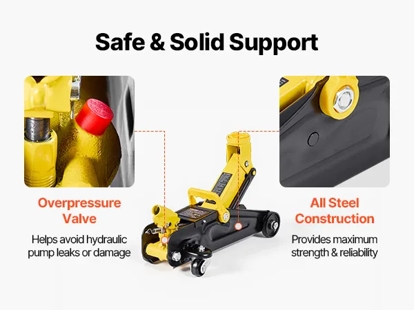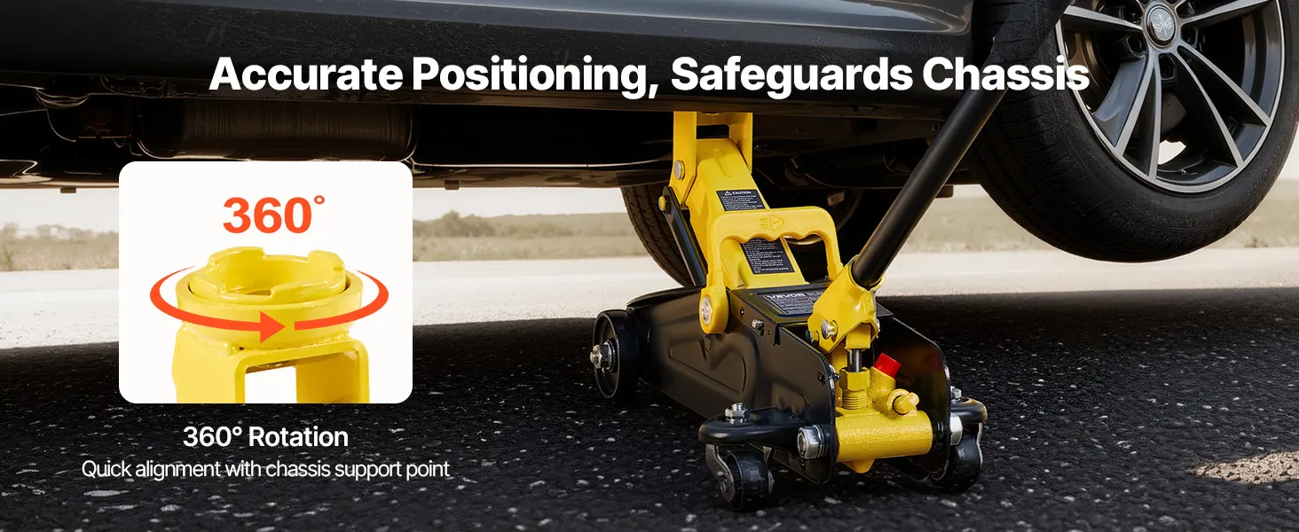 Supporto sicuro: realizzato in robusto acciaio pieno, questo cric per auto a basso profilo riduce al minimo le oscillazioni o le cadute improvvise. La parte superiore girevole si allinea rapidamente con i punti di sollevamento del veicolo