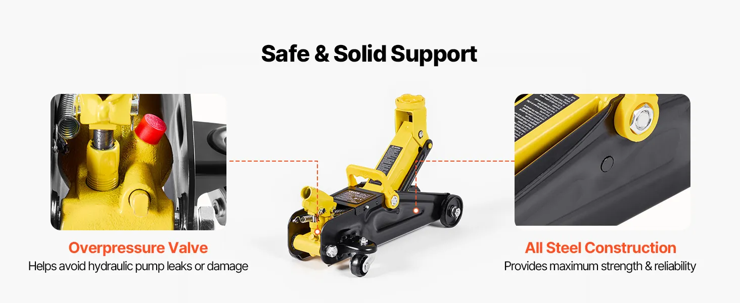 Il nostro cric a pavimento a basso profilo è dotato di un sistema idraulico sigillato con una potente forza di sollevamento e una maggiore capacità di carico. Solleva in modo rapido e stabile, facilitando la manutenzione quotidiana dell'auto. Una scelta affidabile e durevole.