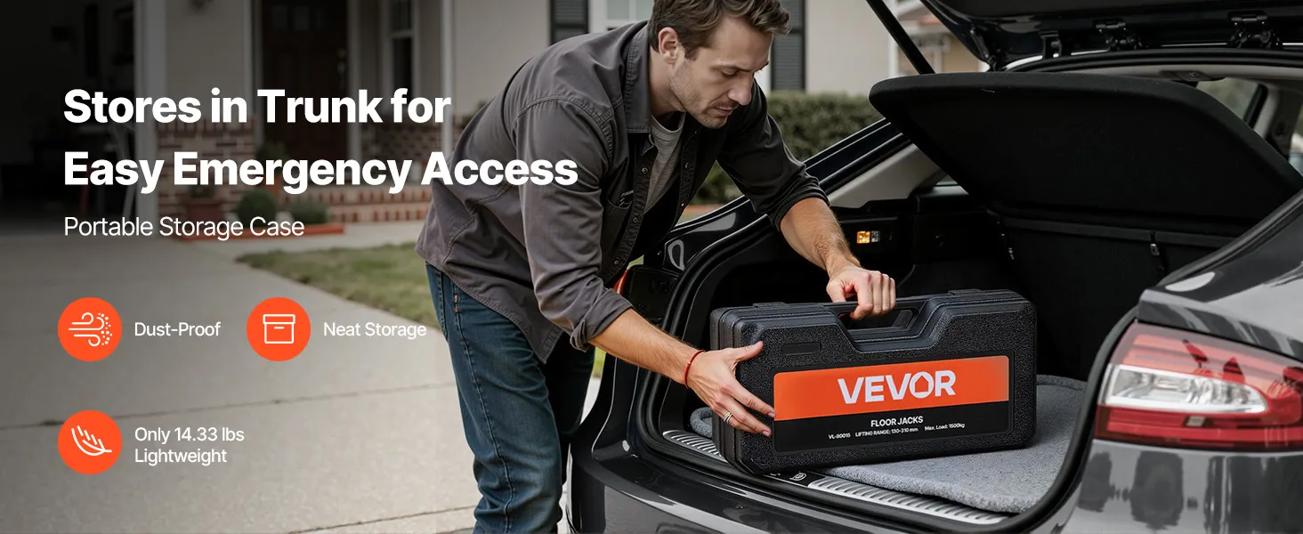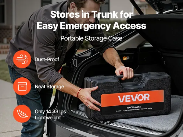 Il cric idraulico è dotato di una custodia in plastica impermeabile e antipolvere con un'apertura liscia, ideale per organizzare gli attrezzi. È facile da riporre nel bagagliaio per un comodo utilizzo di emergenza.