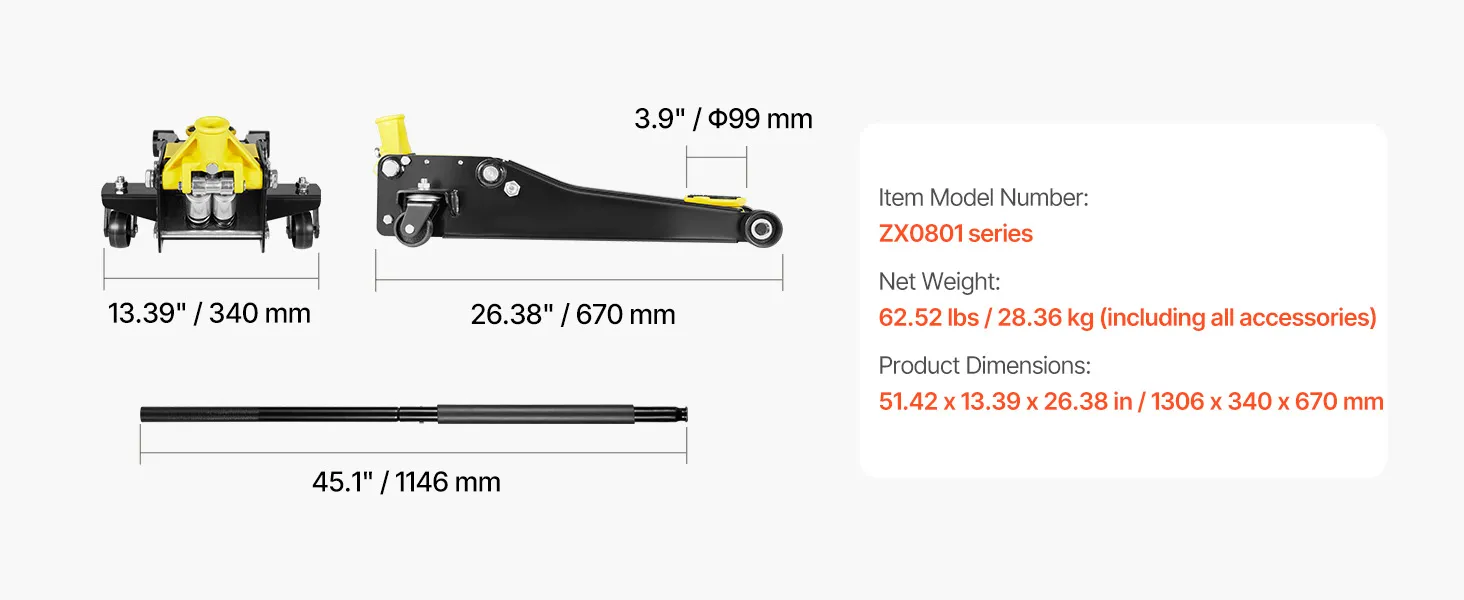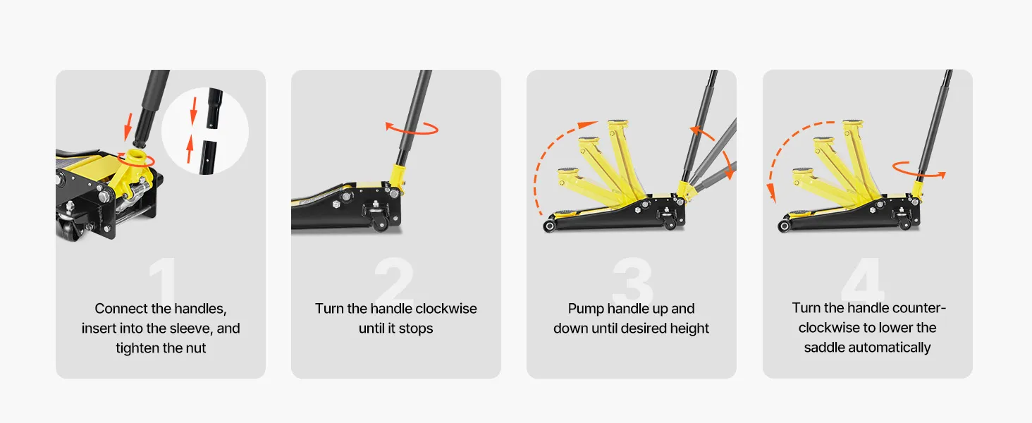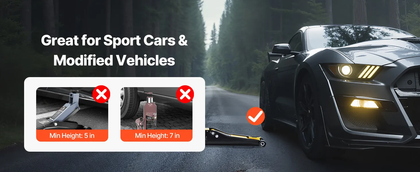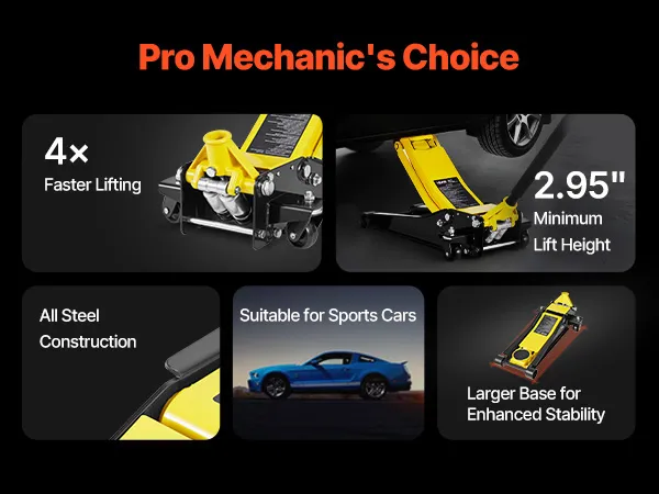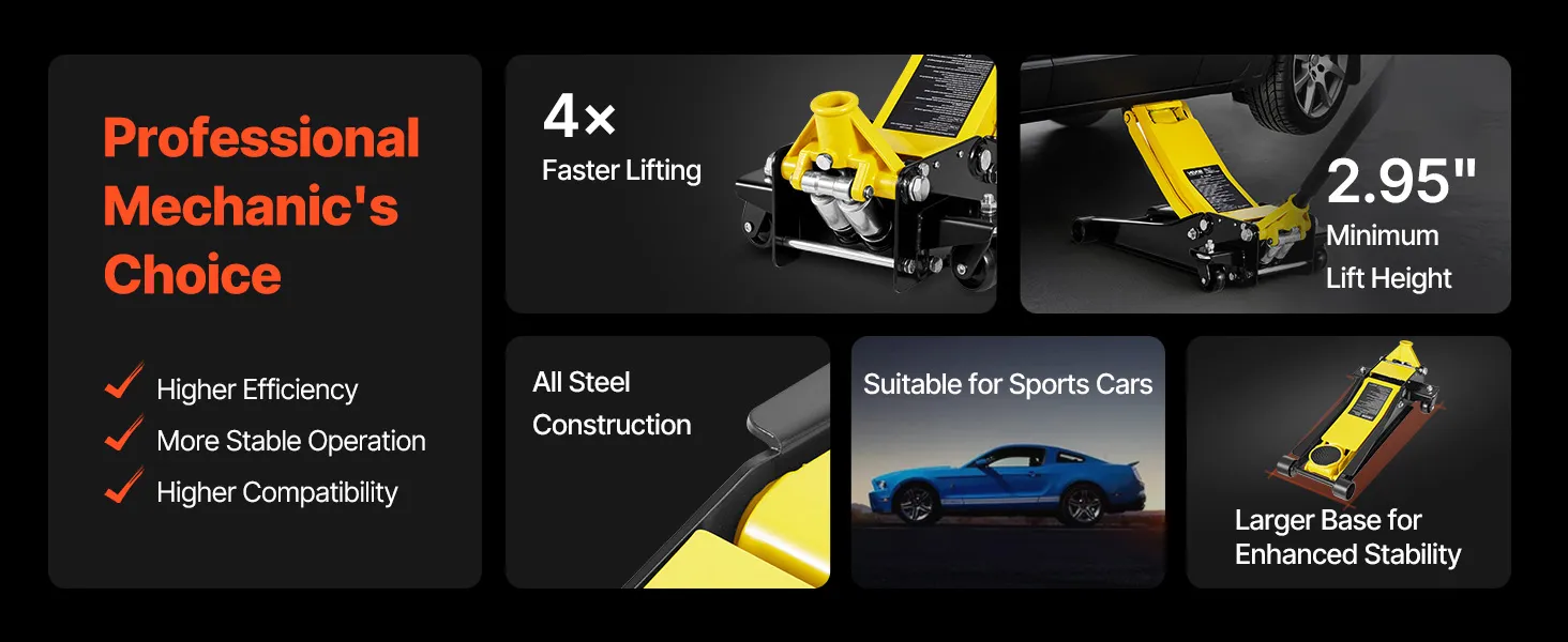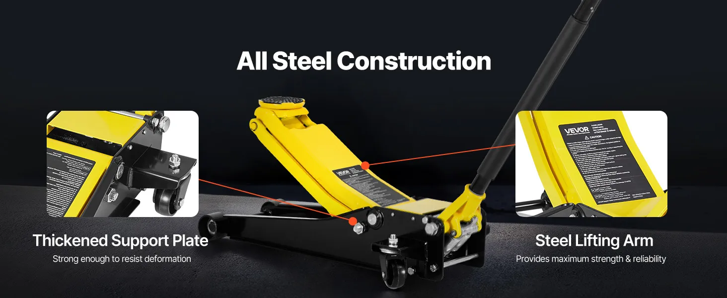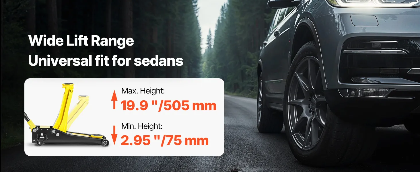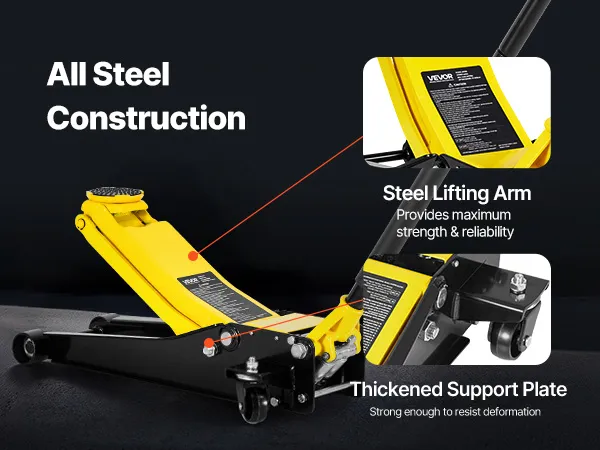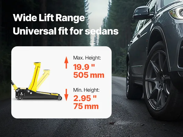 Carico massimo 2 tonnellate: il nostro cric da pavimento supporta 2 tonnellate (4400 libbre), ideale per sollevare auto sportive, berline e SUV compatti. È affidabile per la manutenzione domestica, il cambio pneumatici, il controllo dei freni