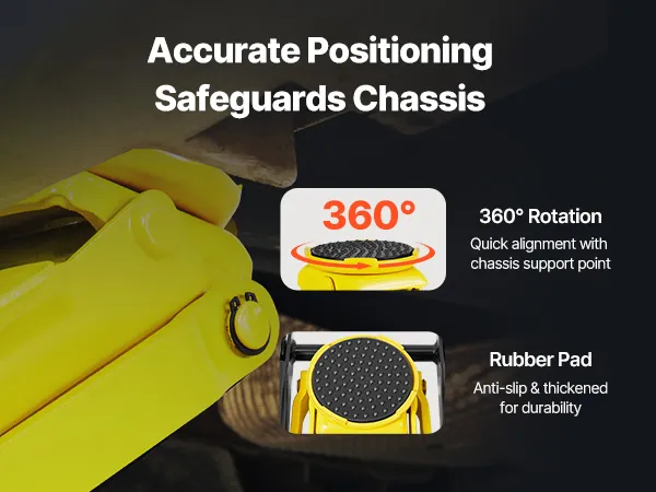 Il cric idraulico da pavimento è dotato di ruote girevoli ad alta resistenza che si muovono fluidamente e resistono all'allentamento, garantendo durevolezza e mobilità più sicura.