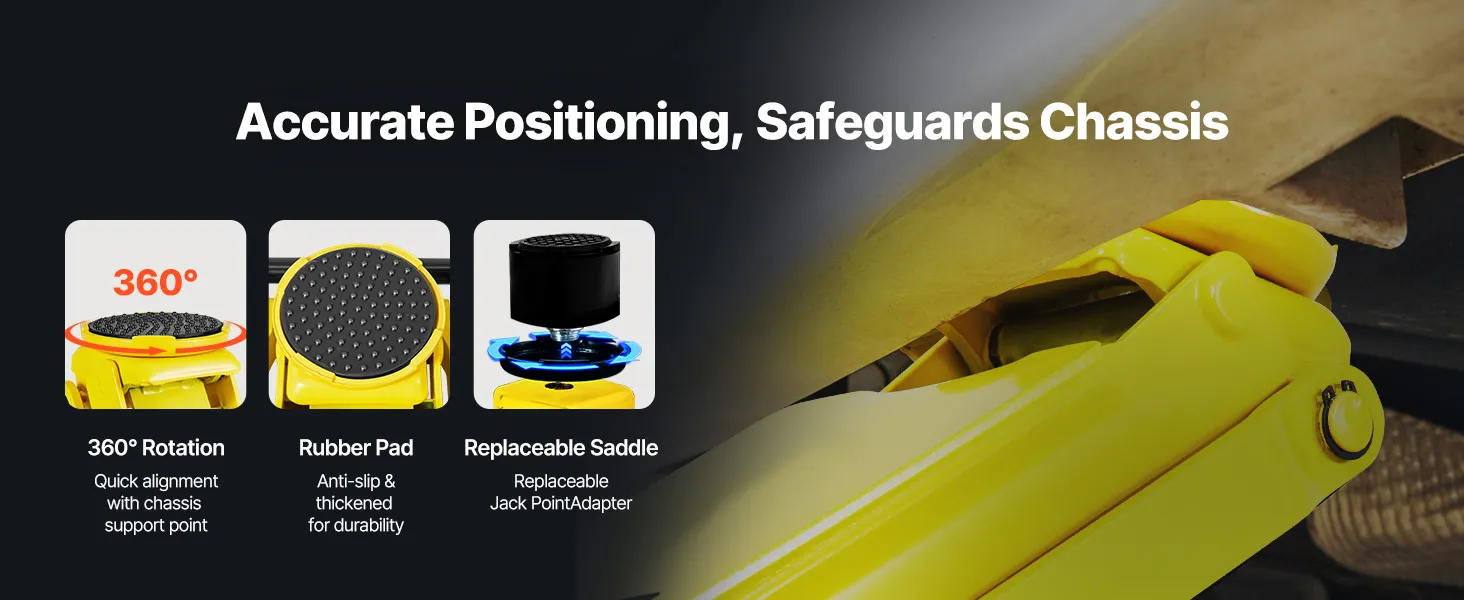 Supporto sicuro: realizzato in robusto acciaio pieno, questo cric per auto a basso profilo riduce al minimo oscillazioni o cadute. La parte superiore girevole con cuscinetto in gomma antiscivolo protegge la parte inferiore del veicolo