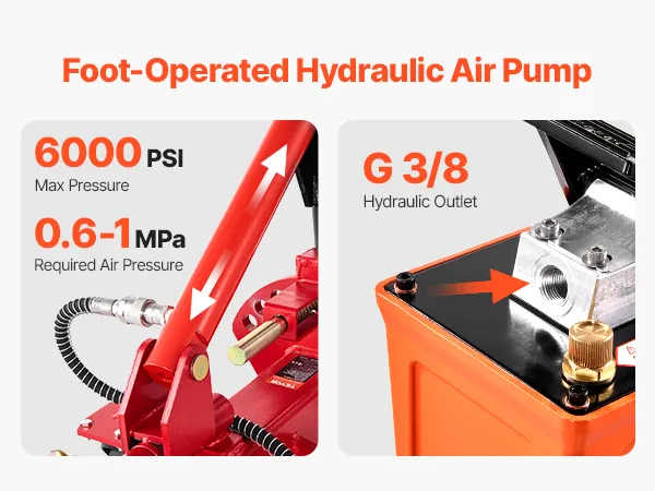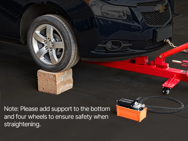 Pompa idraulica pneumatica: l'estrattore per carrozzeria è dotato di una pompa a pedale che consente un facile controllo della posizione del cilindro idraulico. Un connettore G3/8 e una pressione dell'aria di 0,6-1 MPa garantiscono un raddrizzamento efficiente