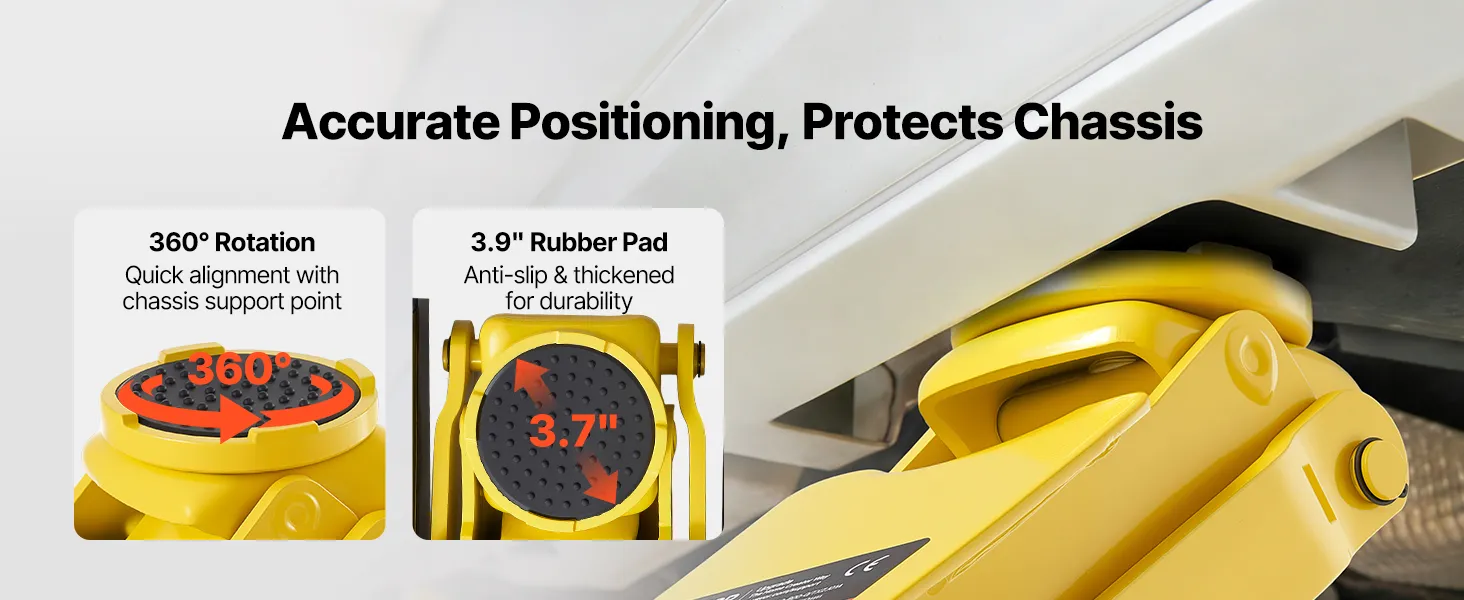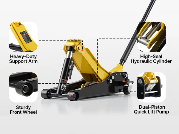 Sollevamento rapido a doppio pistone: Il cric per auto a basso profilo utilizza un sistema di pompa idraulica a doppio pistone per un sollevamento più rapido. I doppi cilindri distribuiscono il peso in modo uniforme. Un sistema idraulico sigillato aiuta a ridurre le perdite e supporta un sollevamento stabile con un rischio di sovraccarico inferiore