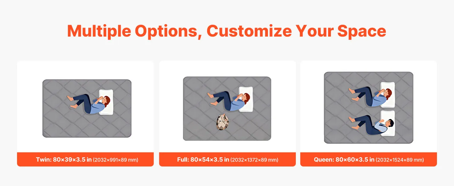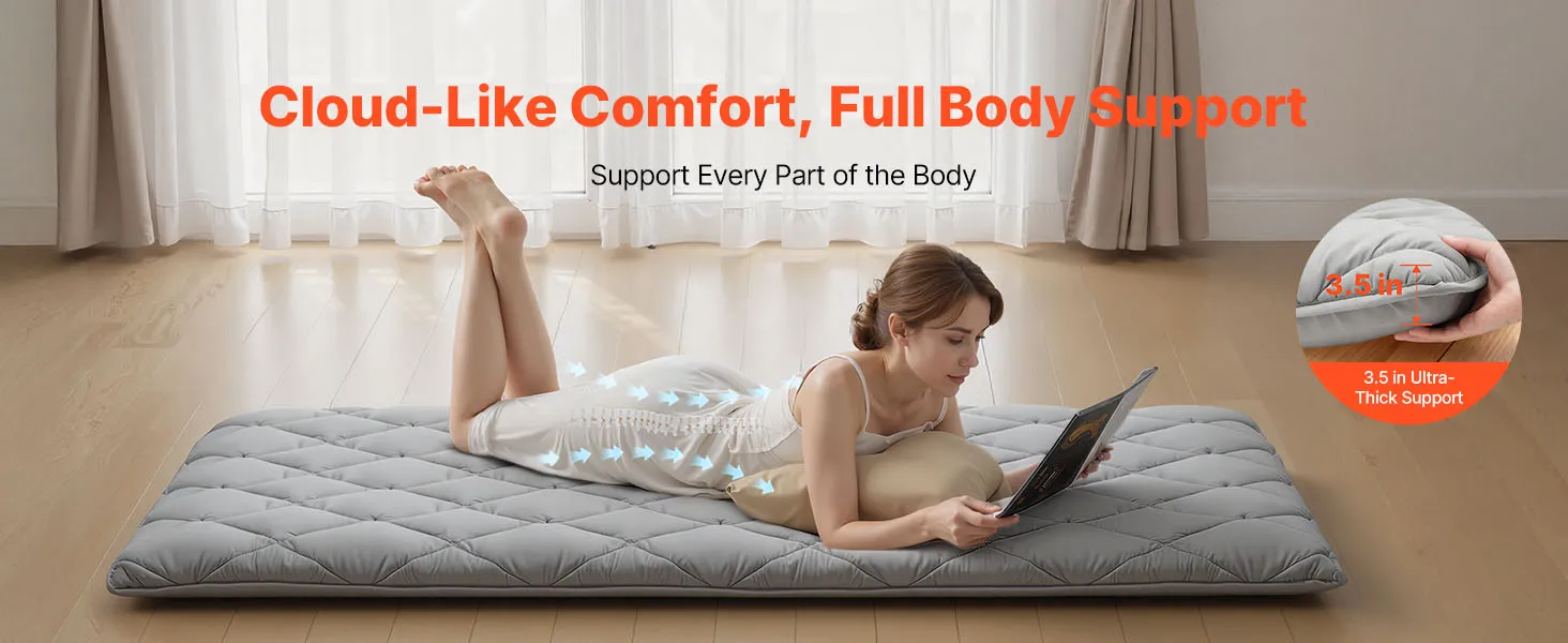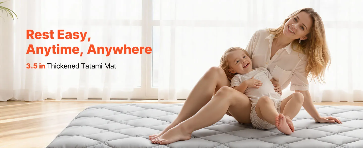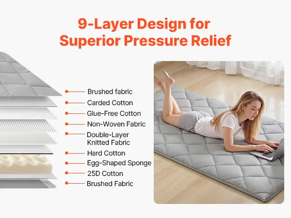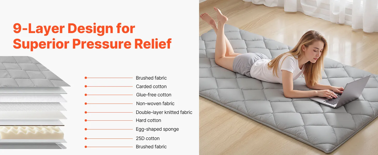 Supporto rinforzato a 9 strati: questo tatami spesso 89 mm presenta una struttura a 9 strati con schiuma di memoria 25D per un supporto e un comfort bilanciati. Il suo design ergonomico si adatta al tuo corpo