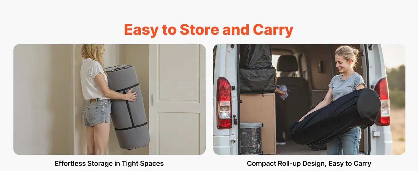 Facile da riporre e trasportare: il materasso giapponese da pavimento si arrotola e si fissa con delle cinghie per risparmiare spazio nell'armadio. È inclusa una borsa per il trasporto, così puoi rilassarti comodamente in tenda