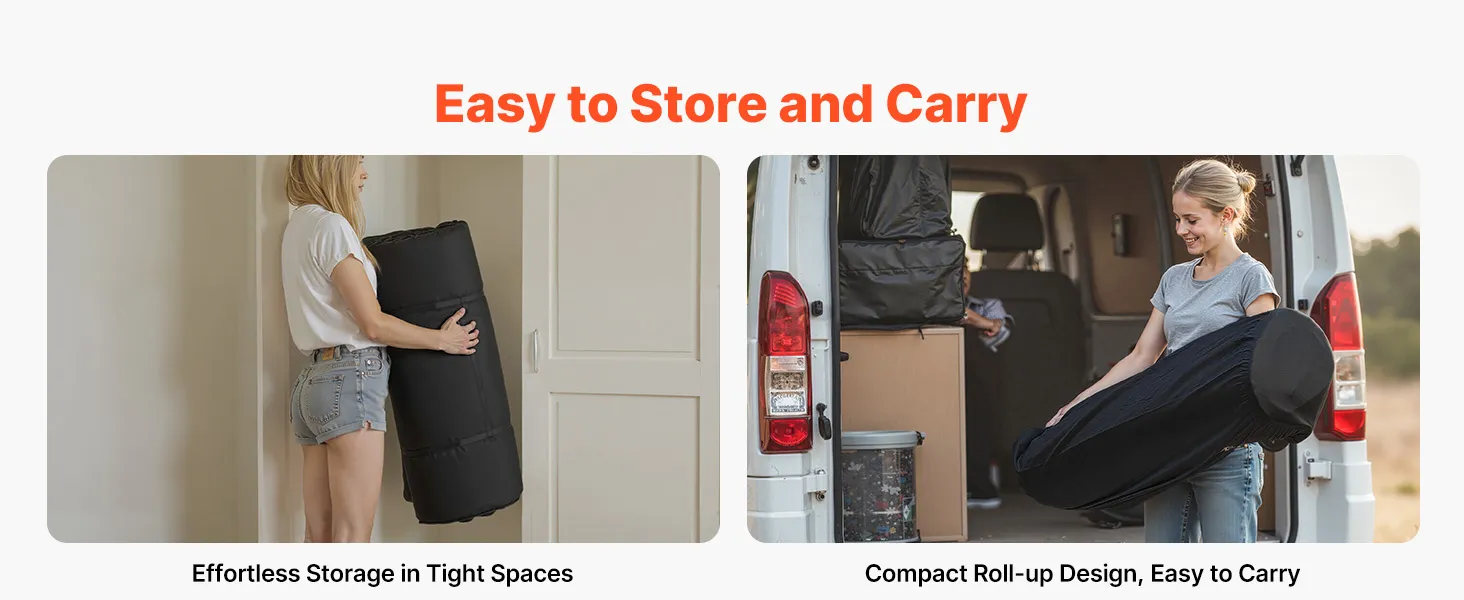 Facile da riporre e trasportare: il materasso giapponese da pavimento si arrotola e si fissa con delle cinghie per risparmiare spazio nell'armadio. È inclusa una borsa per il trasporto, così puoi rilassarti comodamente in tenda, camper
