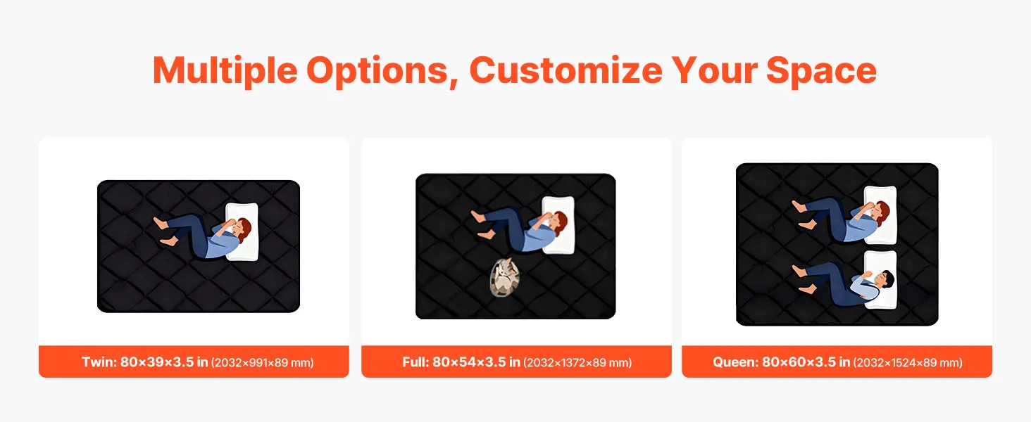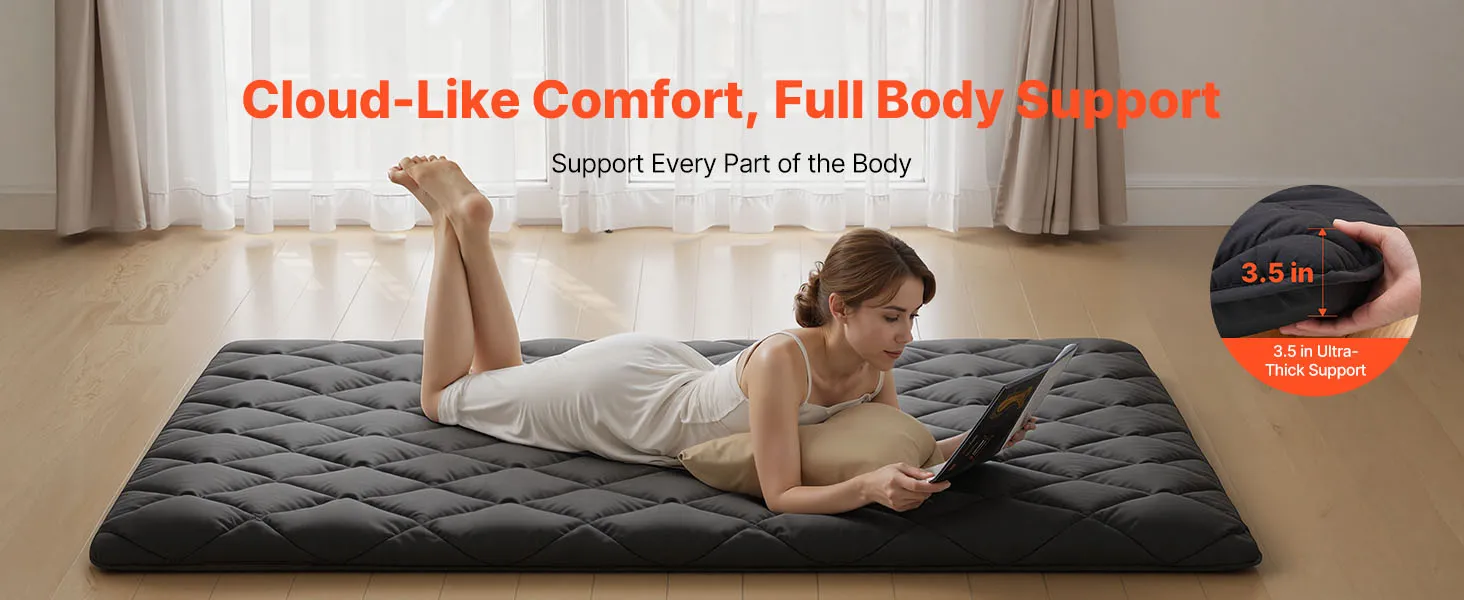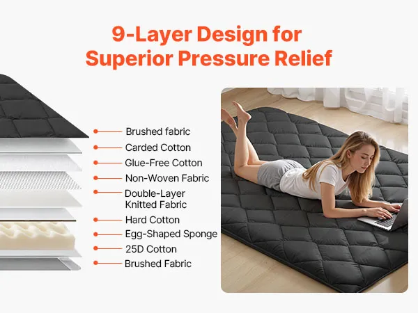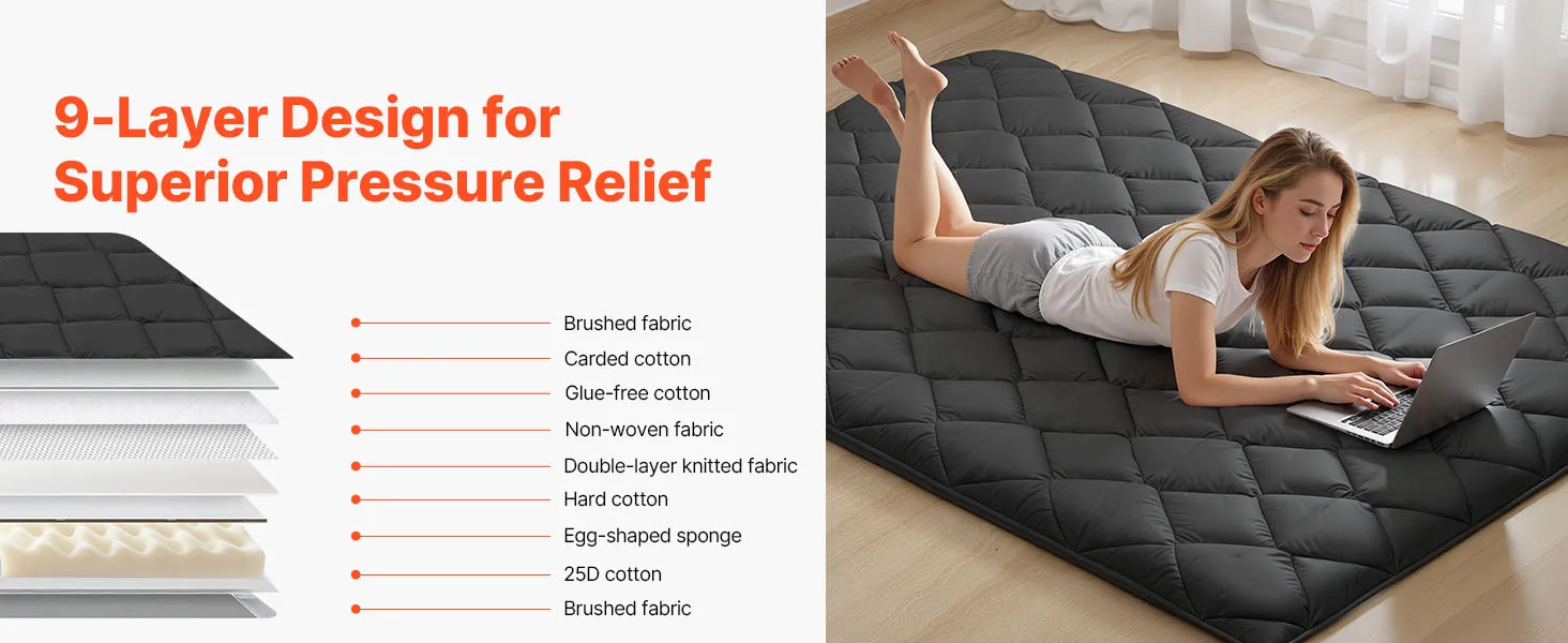 Supporto rinforzato a 9 strati: questo tatami spesso 8,9 cm presenta una struttura a 9 strati con schiuma memoria 25D per un supporto e un comfort bilanciati. Il suo design ergonomico si adatta al tuo corpo