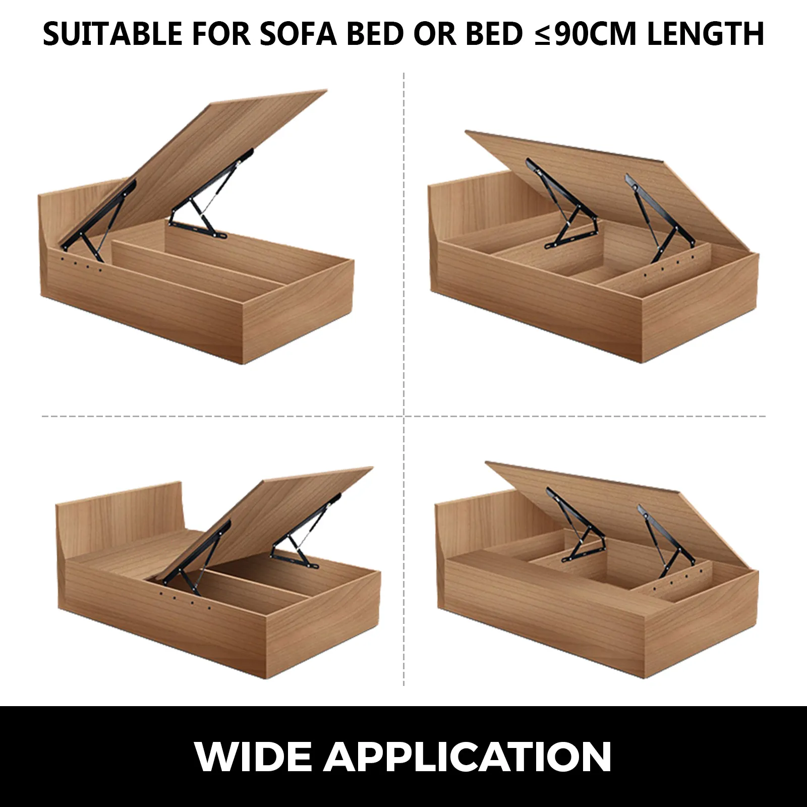 Questo kit sollevatore idraulico può essere utilizzato per diversi tipi di letti, tra cui tatami e divano letto. Ma tutto dovrebbe essere inferiore a 90 cm. I meccanismi possono essere orientati per aprirsi dal lato del letto o all'estremità del letto.