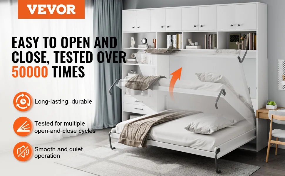 VEVOR Kit Letto a Scomparsa, Misura Completa, Kit di Ferramenta Meccanica Letto a Muro Deluxe Fai da Te, Supporto Telaio Letto per Impieghi Gravosi con Leva Pneumatica, Letto a Muro Pieghevole