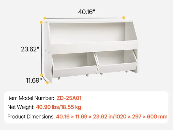 VEVOR Mobiletto di Stoccaggio Portaoggetti di Giocattoli per Bambini con Contenitore, Armadietto Porta Giocattoli con 2 Cassetti Mobili, Scaffale per Giocattoli per Camera da Letto, Bianco